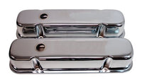 Pontiac Large, Chrome Steel Valve Covers To Fit 1959-1981 Pontiac 301-326-350-389-400-420-428-455 V8 Engines. They Are Stumped And Large Style To Rockers. There Is A Vent Hole In Each Cover. Height: 3-1/2''