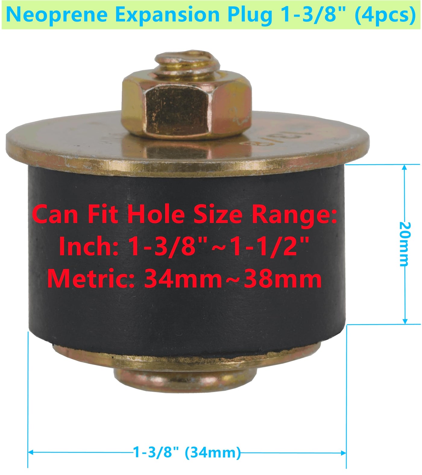 Neoprene stopper that provides a mechanism to make it expandable. A tight fit will keep them from working their way out. 4 pcs 1-3/8 inch to 1-1/2 inch Neoprene Expansion Plug 34mm-38mm
