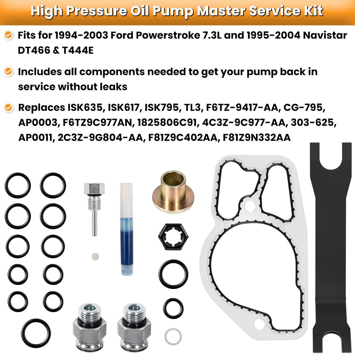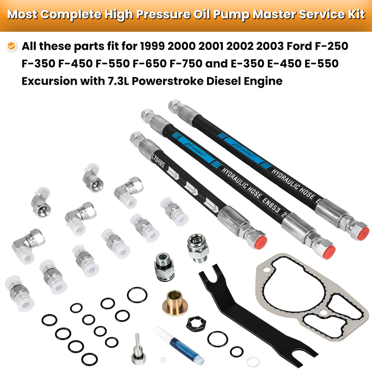 High Pressure Oil Pump HPOP Master Service Kit & Hoses Lines & Crossover Kit for Ford 7.3L Powerstroke Diesel engines F-series E