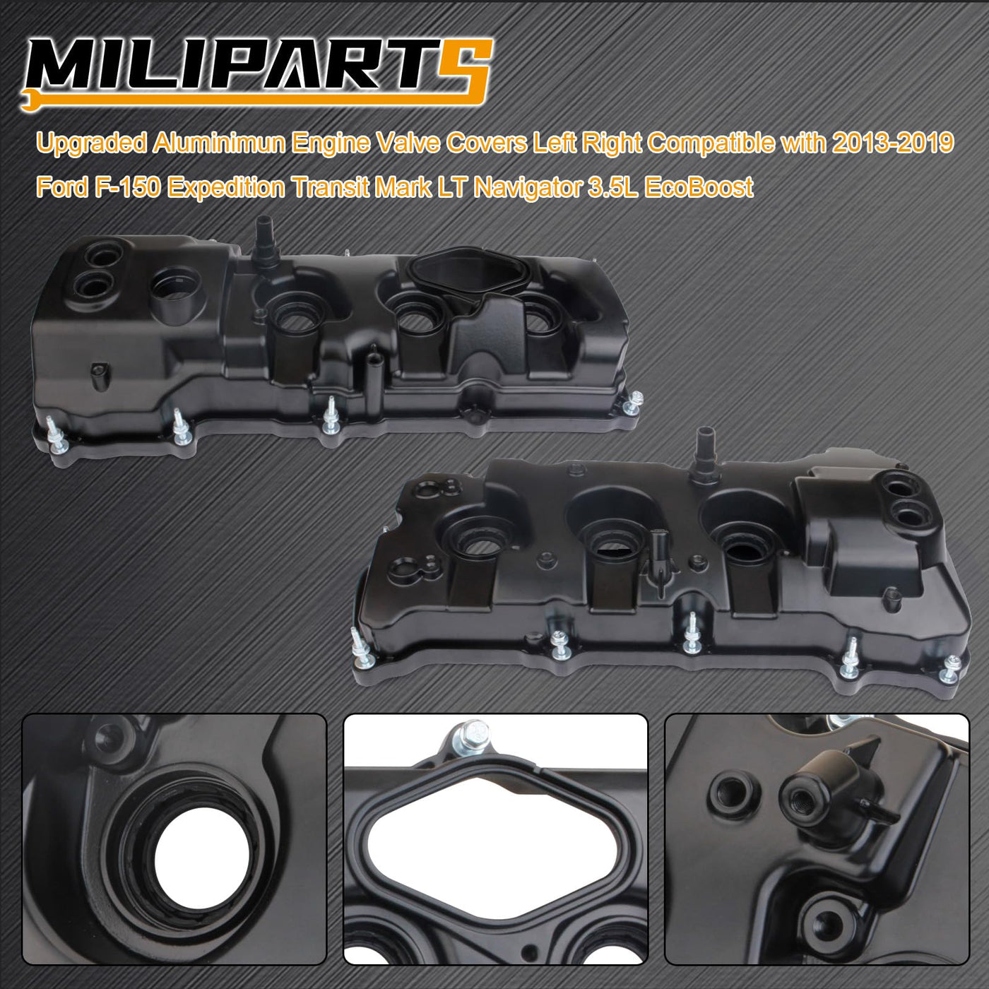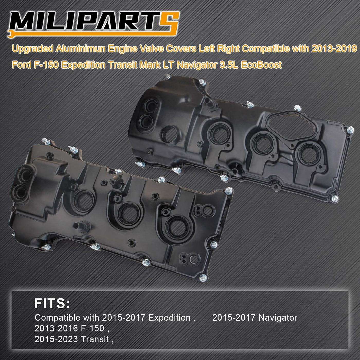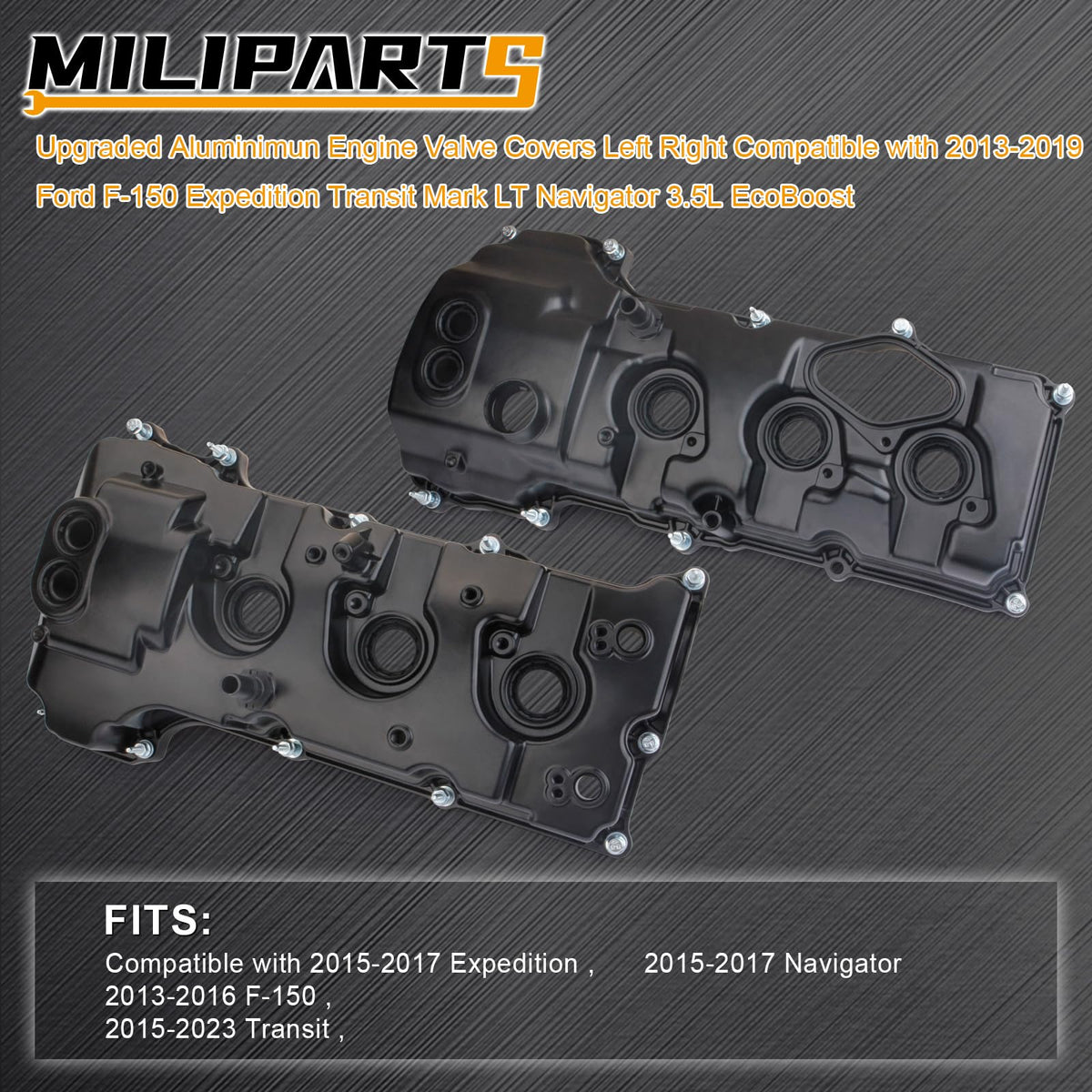 MILIPARTS Upgraded Aluminimun Engine Valve Covers Left Right Compatible with Ford F-150 Expedition Transit Mark LT Navigator 3.5