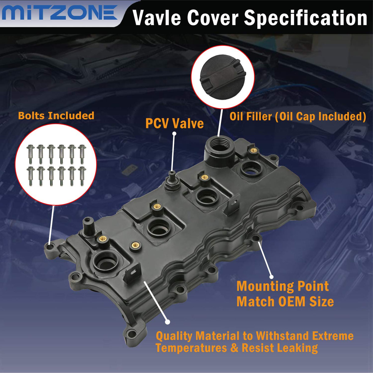 Fitment:PACKAGE: 1 Valve Cover Kit includes: NEW Engine Valve Cover , New Oil Cap , NEW Engine Valve Cover Gasket , NEW Bolts. NOTE : Please reference to the first picture as shown. Fit for 2007 - 2013 NISSAN ALTIMA 2.5L L4 . Fit for 2007 - 2011 NISSAN ALTIMA Hybrid 2.5L . Fit for2007 - 2012 NISSAN SENTRA SE-R 2.5L