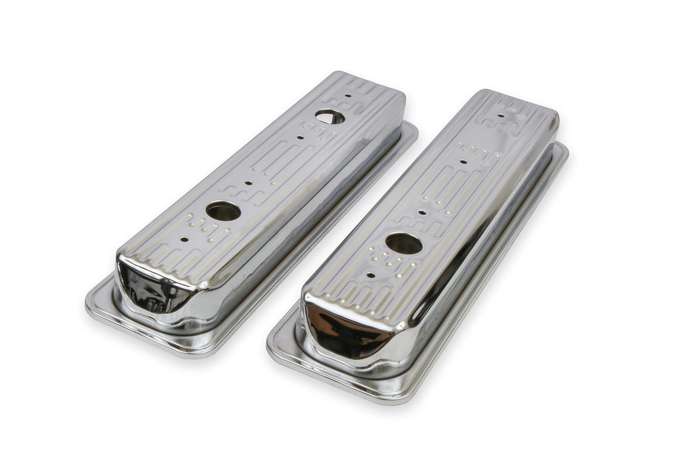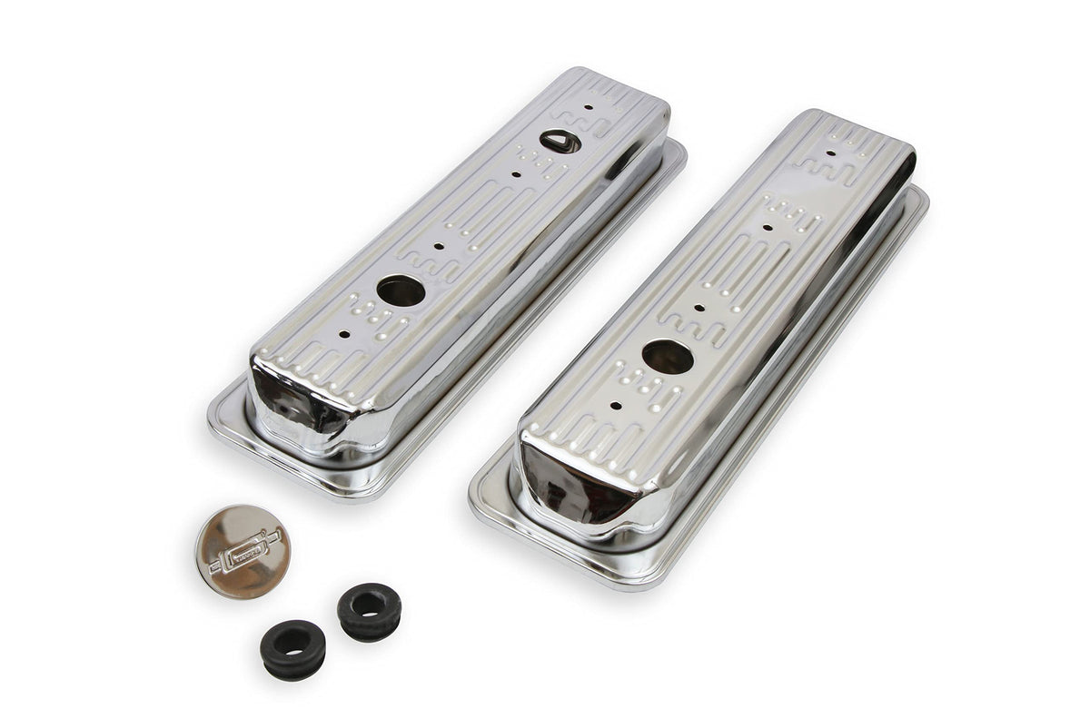 Mr. Gasket Chrome Plated Valve Covers are designed to fit the engine oil filler tube. They are chrome plated and corrosion resistant. These covers are easy to use with custom chrome filler tube and are backed by a limited warranty.