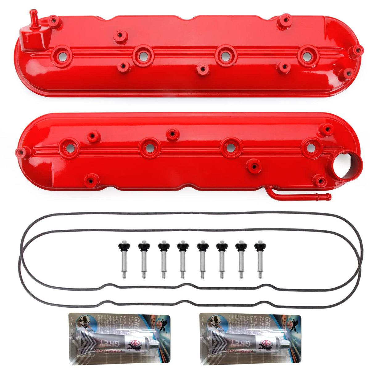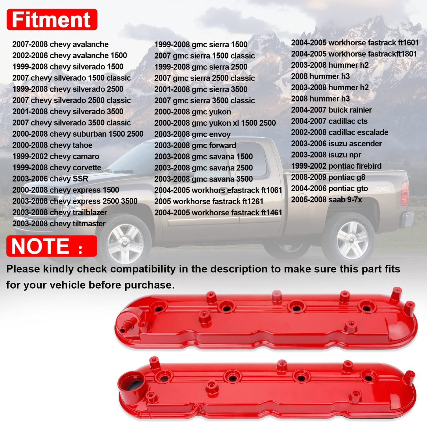 Red Valve Covers Left & Right Compatible With Silverado Sierra Express Savana Avalanche Suburban Trailblazer Tahoe Yukon Escalad