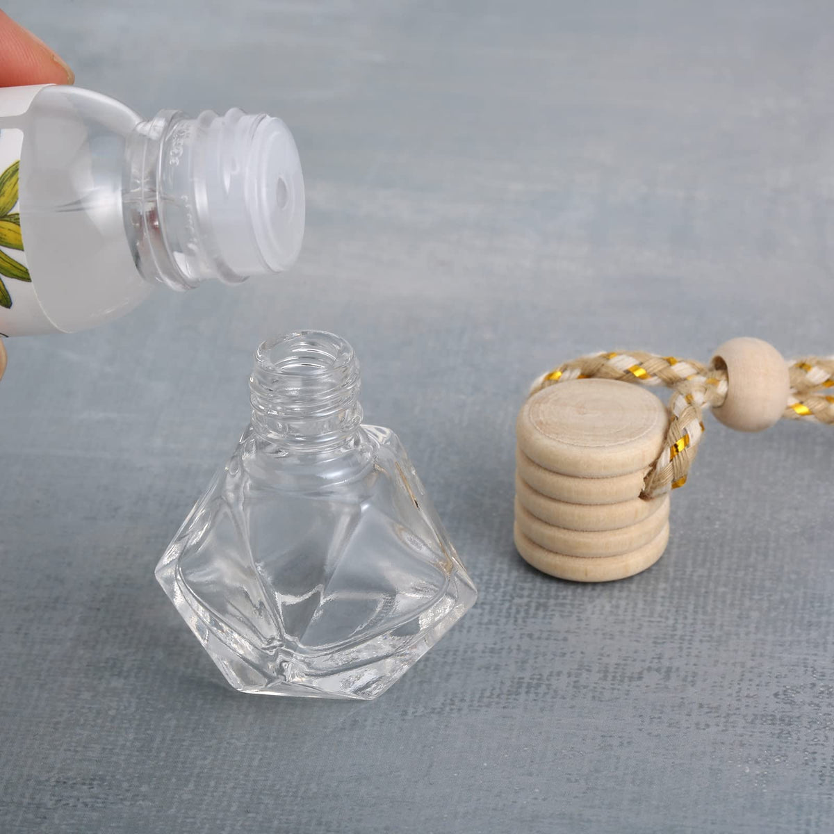 Q: Can I use these bottles for essential oils?A: Yes, these empty refillable car perfume bottles are perfect for storing essential oils, perfumes, or fragrances. Their clear glass design allows you to see the liquid inside, making it easy to know when it's time for a refill.