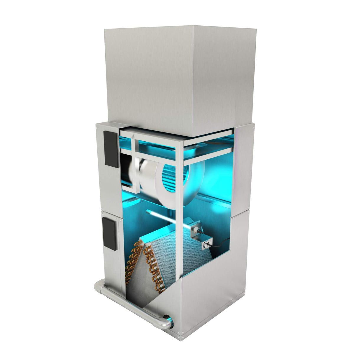 Q: How does the UVC germicidal bulb help in cleaning?A: The 14-inch UVC germicidal bulb emits ultraviolet light that destroys and prevents mold and microbial growth on the evaporator coil and surrounding areas, ensuring cleaner air quality.