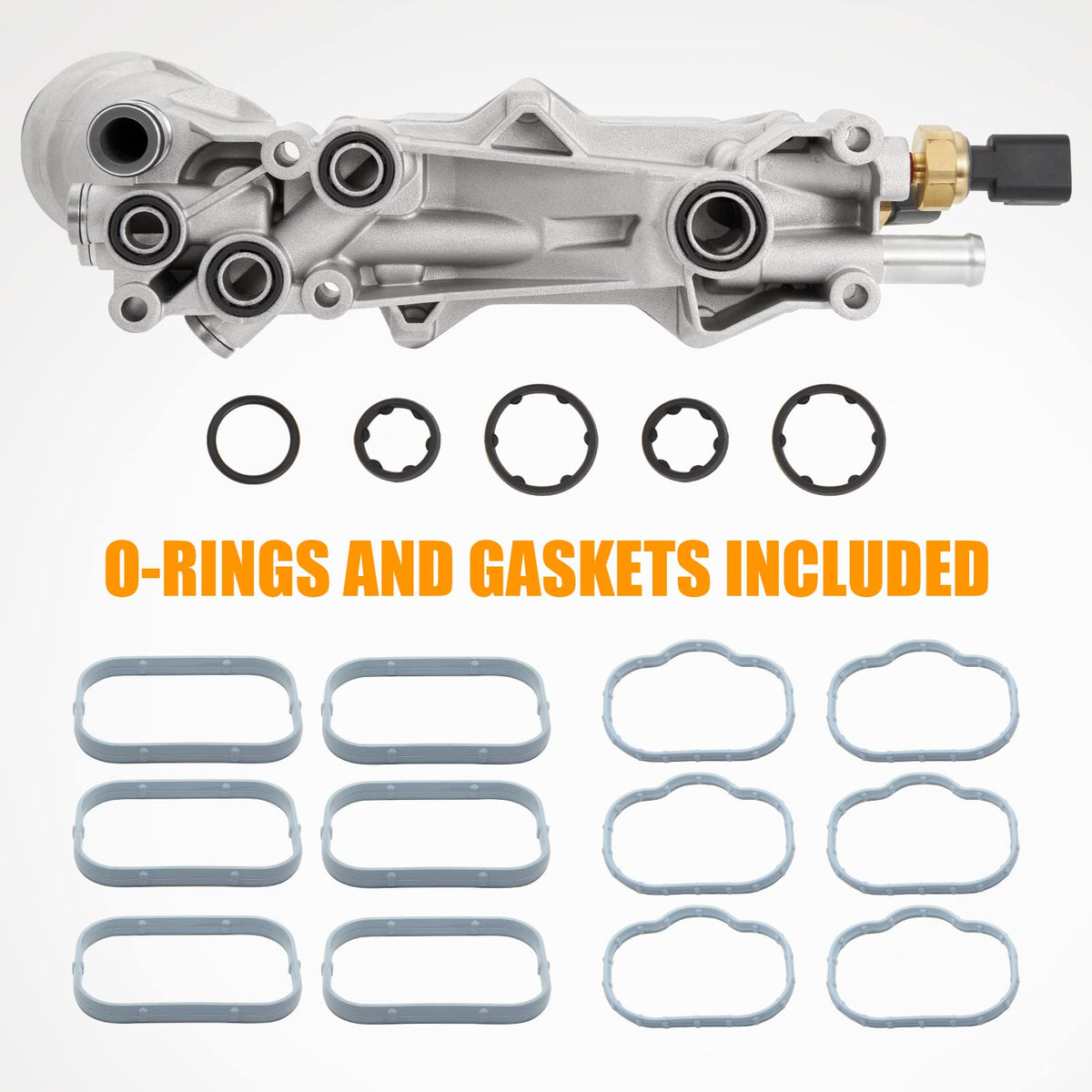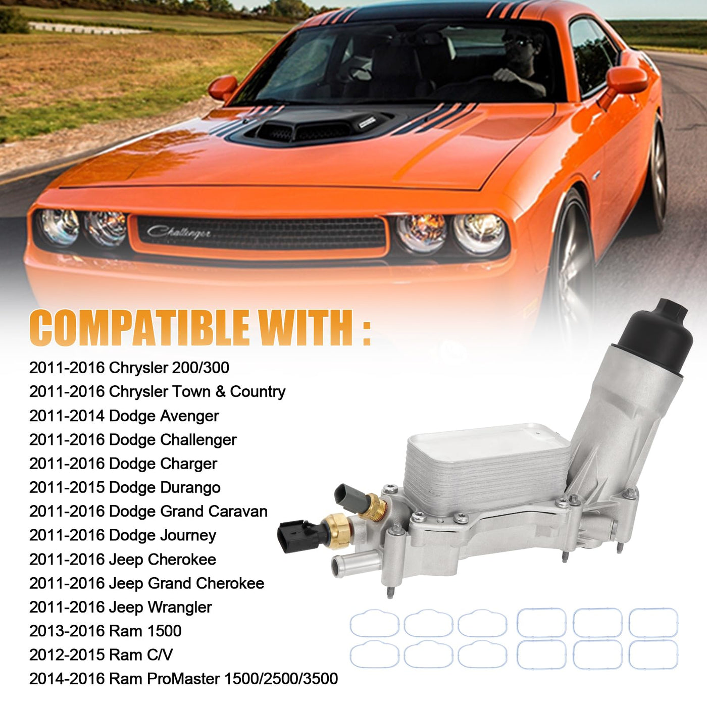 Perfect Replacement: The Original Plastic Oil Filter Housing Very Easy Break, That Will Cause A Leak And Allow Debris Into The Oil Frequently, Which Will Damage Engine Parts And Clog The Oil Filter. Our Upgaded Aluminum Style Oil Filter Housing Kit Can Perfect Resolve Problems And Replacement The Factory One | Fitment: Compatible With 2011-2016 Dodge Challenger/Charger/Durango/Grand Caravan/Journey/Grand Cherokee, 2011-2014 Dodge Avenger, 2011-2016 Chrysler 200/300/Town & Country, 2014-2016 Ram Promaster 1500/2500/3500, 2012-2016 Wrangler, 2013-2016 Ram 1500, 2012-2015 Ram C/V, 2014-2016 Cherokee 3.2L 3.6L 6Cyl. (Oil Pressure Sensor Can Not Fit 2017+ Models!!) | Replace Part Number: 5184294Ae, 5184304Ae, 5184304Af, 5184294Ad, 5184294Ac, 68105583Ag, 68105583Af, 68105583Ae, 68105583Ad, 68105583Ac, 68105583Ab, 68105583Aa, 68308741Af, 68308741Ac, 68308741Ab, 68308741Aa, 68310865Af, 68310865Ac, 68310865Ab, 68310865Aa, 68365925Ad, 68365925Ac, 68365925Ab, 68365925Aa, 68365931Ad, 68365931Ab, 68365931Aa | Benefits: The Engine Oil Cooler Can Keep The Engine Oil Cool And Clean, Allowing The Car To Accelerate Faster And Helping To Extend The Life Of The Oil And Engine. Made With Lightweight Aluminum Alloy, Use 8-Layer Thick Plates And 8-Layer Thin Plates, Cross Double-Layer Design, Which Increases Cooling Efficiency | Service: We Offer 1 Year Product Quality Support To Our Customers. Any Questions Please Feel Free To Contact Us, We Will Reply To You Within 24 Hours