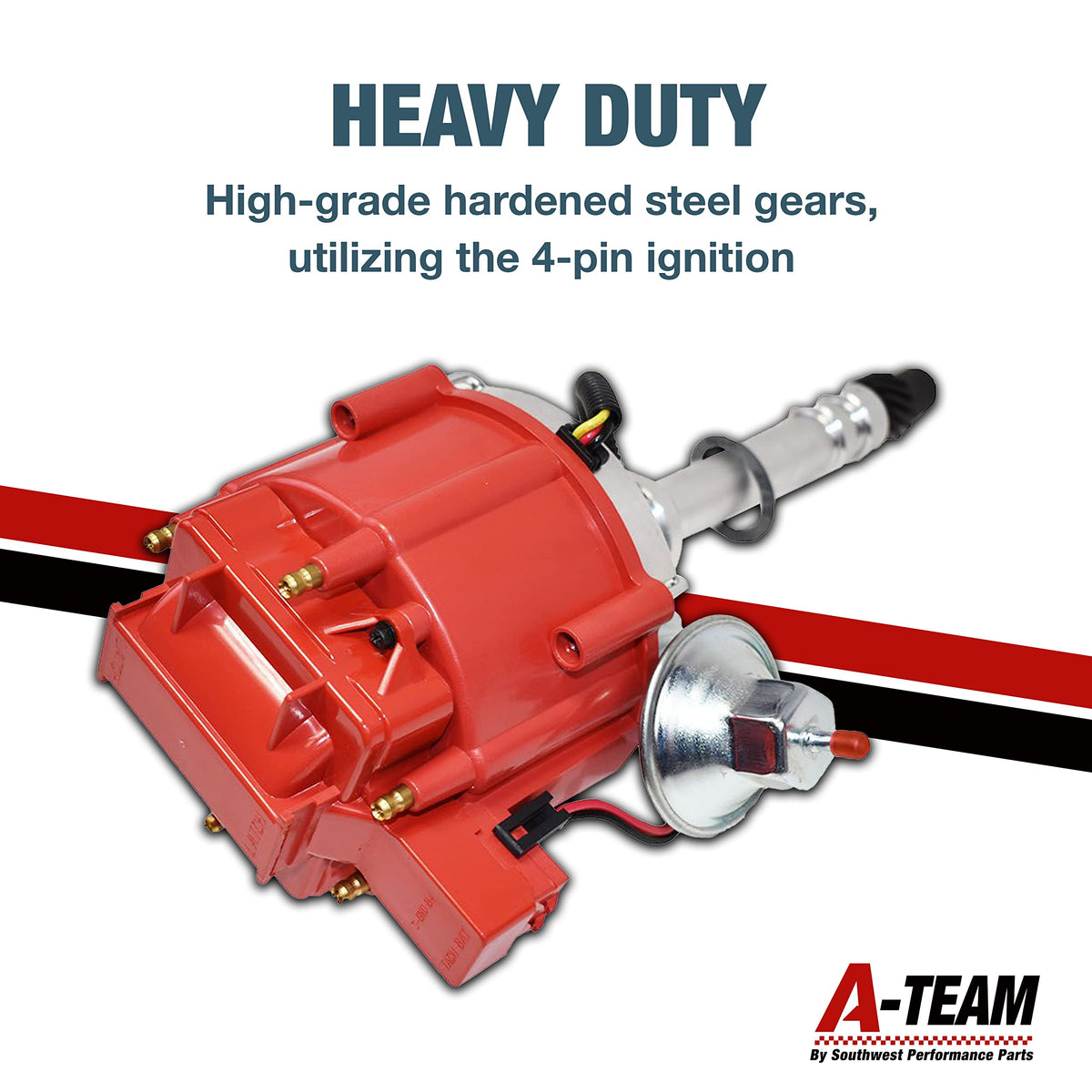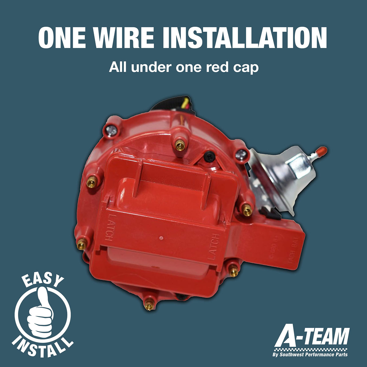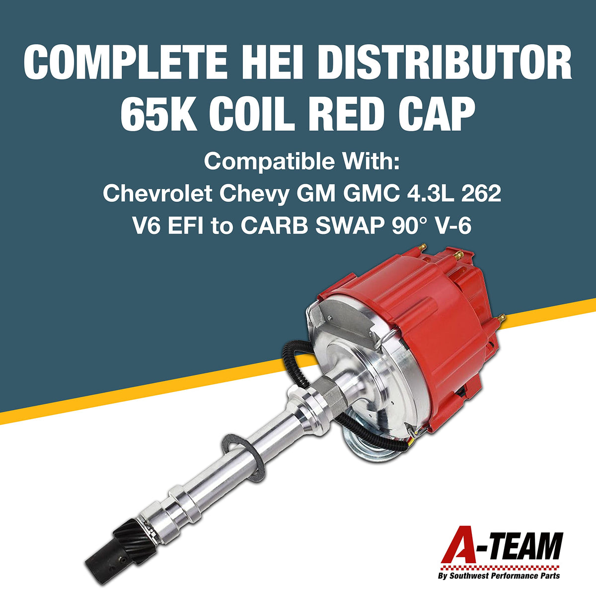 A-Team Performance 4.3L 262 V6 Efi To Carb Swap 65K Coil Complete Hei Distributor Compatible With Chevrolet Chevy/Gm Gmc 7500 Rpm 90 V-6 One Wire Installation A-Team Performance Components Offer A Quality Design At An Affordable Price. Features A Quick 1 Wire Installation. Adjustable Vacuum Advance Canister To Improve Economy. A Hei Distributor Compatible With Small Block/Big Block Chevys With A 65,000 High Voltage Coil Spark Through 7,500 Rpm. Comprised Of Brass Terminals, Multi-Polymer Protective Caps, A Cnc Machined And Polished Aluminum Shaft, And A Chrome Moly Gear.Inside, The 4-Pin High Performance Module Work Together To Produce A Powerful Spark To Light The Fuel Mixture For Amazing Performance. We Offer A One-Year Warranty On This A-Team Performance Hei Distributor.