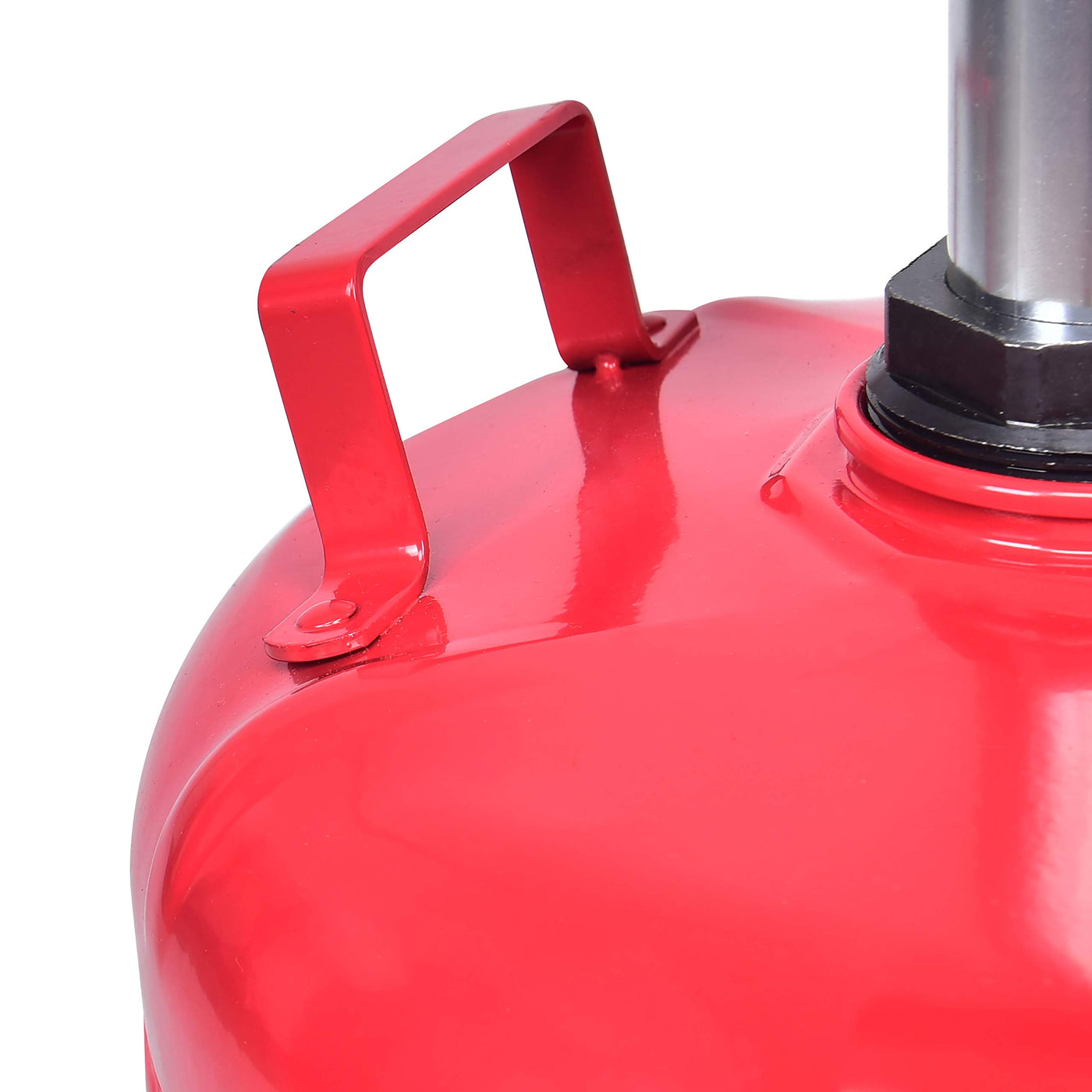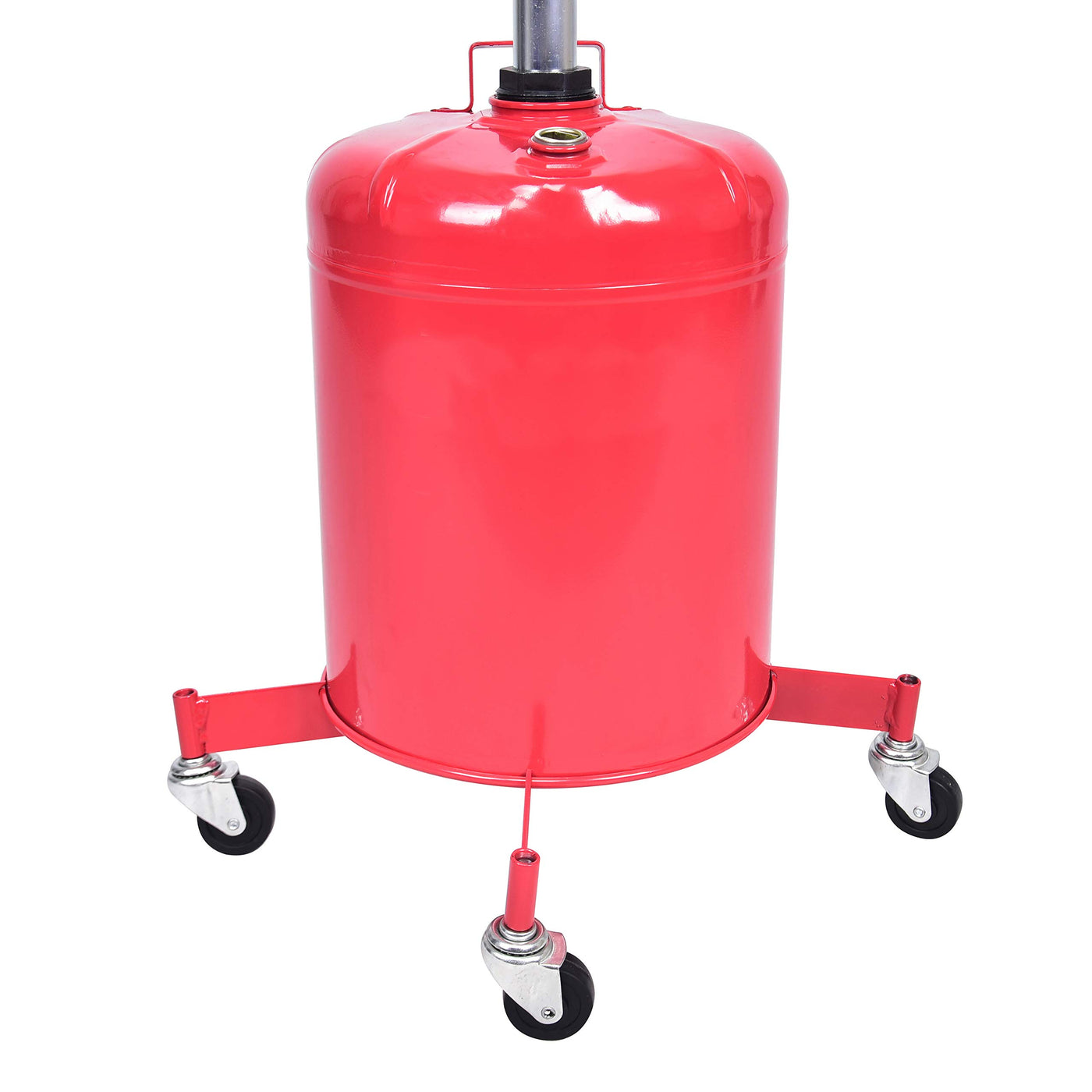 5 Gallon Oil Drian Portable Steel Oil Drain, Waste Oil Drain with Wheel, Adjustable Height, RedAn adjustable, movable oil drain for your garage or auto repair shopThis oil drain dolly can adjust from 40 in. to 67 in. to easily drain your automobile of oil and hydraulic fluids while on overhead lifts.The sump is constructed of galvanized steel and includes a spout that makes it easy to pour.Features include 2 in. diameter swivel casters to easily shift and move the oil drain into place.5 gallon galvanized steel tank with easy-pour spout14 in. diameter funnel made of high-impact polypropyleneSmooth-rolling 2 in. diameter swivel casters