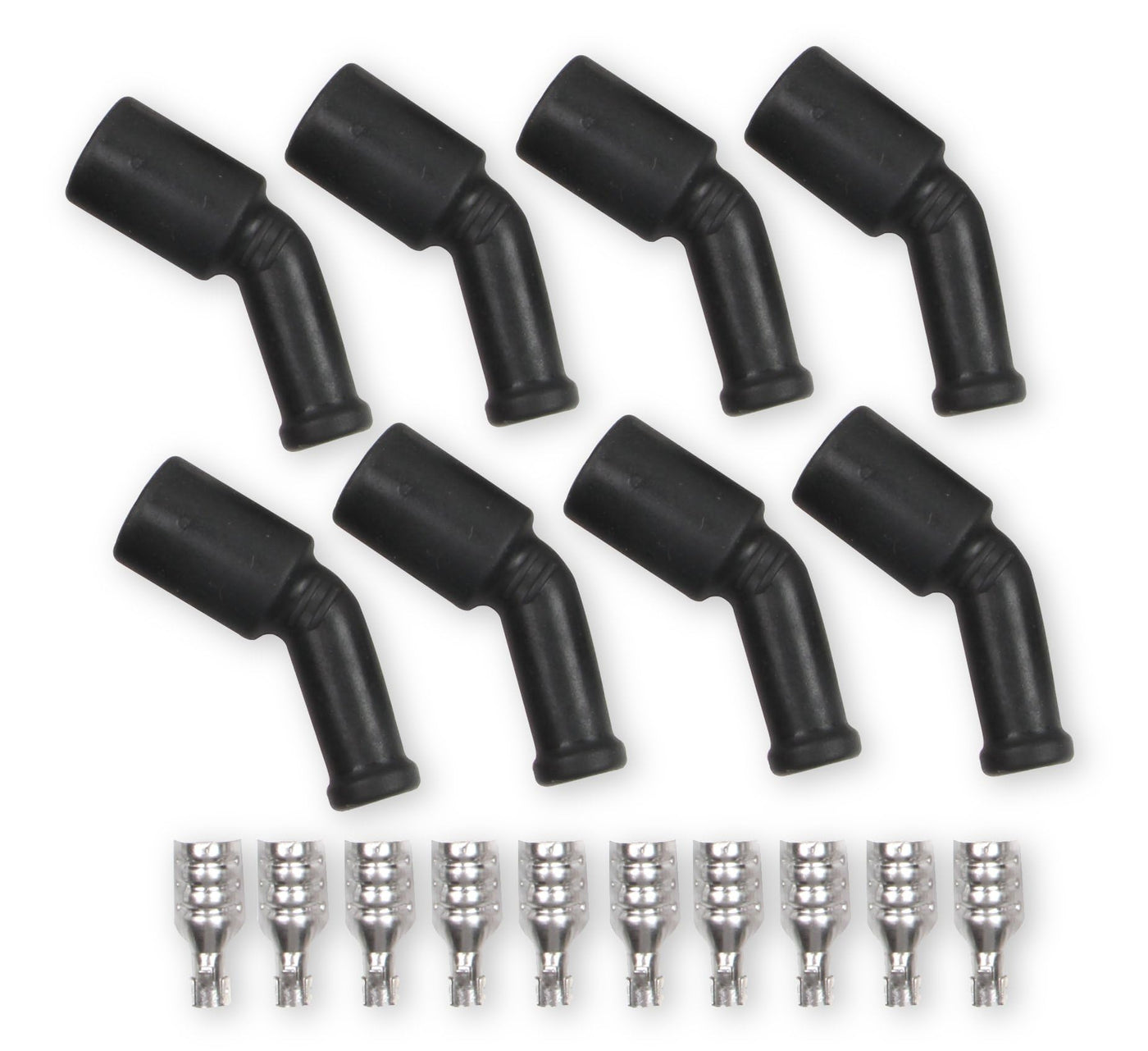 Q: Is the ACCEL 170135-8 Coil Boot & Terminal Kit resistant to heat?A: Yes, the ACCEL 170135-8 Coil Boot & Terminal Kit is made from a high-temperature resistant plastic material, ensuring durability and performance even in high-heat engine environments.