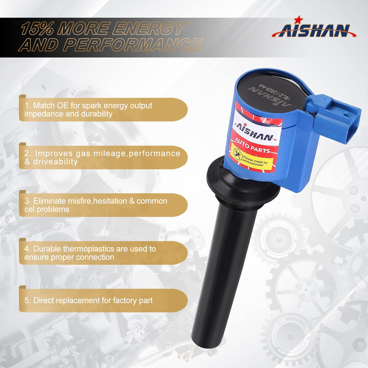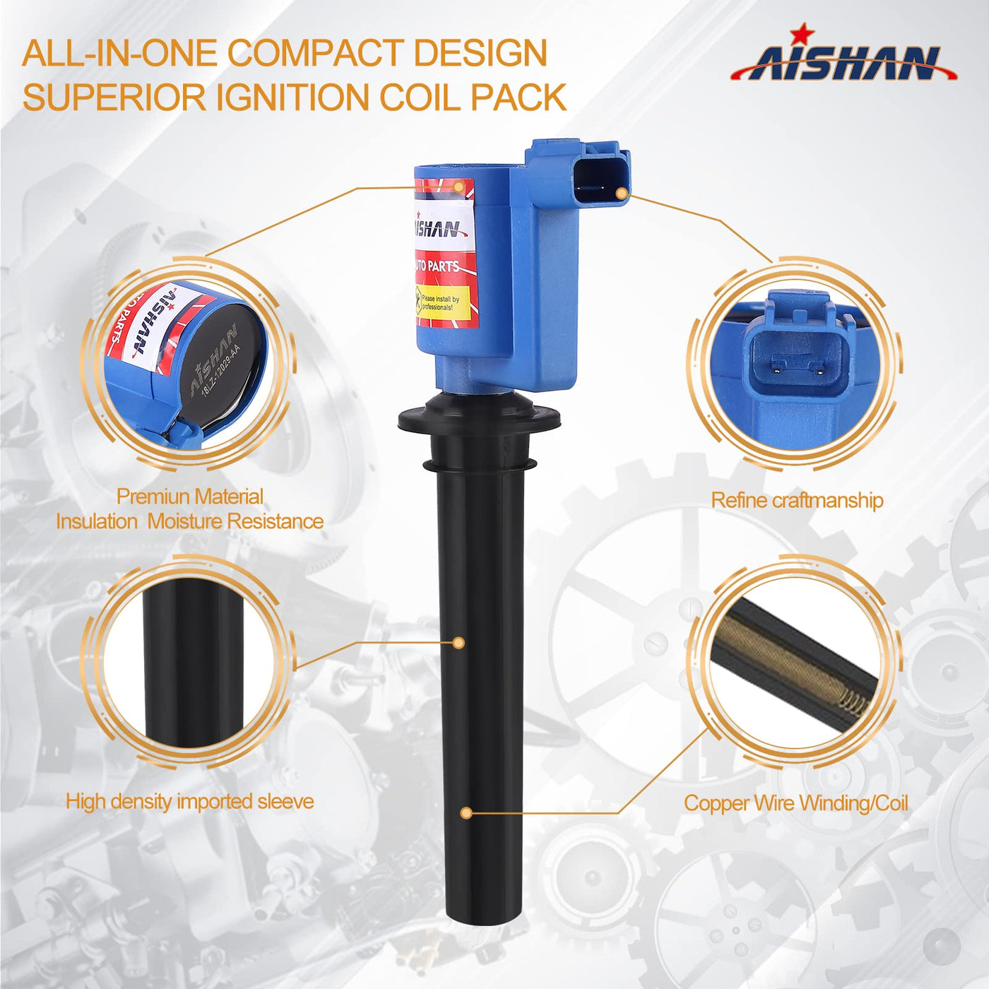 Fitment : Compatible with Ford Escape V6 3.0L 2001-2008, for Ford Five Hundred V6 3.0L 2005-2007, for Ford Freestyle V6 3.0L 2005-2007, for Ford Taurus V6 3.0L 2000-2005, for Mazda 6 V6 3.0L 2003-2008, for Mazda MPV V6 3.0L 2002-2006, for Mazda Tribute V6 3.0L 2001-2011, for Mercury Mariner V6 3.0L 2005-2008, for Mercury Montego V6 3.0L 2005-2007, for Mercury Sable V6 3.0L 2000-2005 | Coil Sets Advantages : AISHAN ignition coil are designed with proven materials,including high quality wires and wire coating.The plug is designed in accordance with specific criterion, all the premium materials make the coil durable and stable under extreme conditions;it helps solve the issue caused by bad coils such as idle shaking, misfire/no start condition and engine light comes on.Our ignition coil packs can provide high energy output, eliminate misfires and provide maximum voltage. | Replacement Ignition Coil : The ignition coils or ignition coil plug provides spark for your engine. Over time the factory ignition coil packs can fail leading to poor gas mileage, hesitation, and a check engine light (CEL). Replace your faulty ignition coil and restore performance and driveability on your vehicle. | 10 Mins Easy Installation : All-in-one compact design, real plug and play, quickly install in 10 mins.no retrofitment required;The gloves and wrench for installation is included, protecting you from dirt and oils.However, ignition coil and spark plug can be replaced together to lower the likelihood of common ignition system dysfunction.Since an aged spark plug will overload and overwork the ignition coils. | 2 Year/6,0000 kilometers Sustainability : We offer 2 Year or 6,0000 kilometers Sustainability high-performance high-voltage ignition output ,true worry-free shopping experience,Please read the fitment list carefully beforehand to avoid ordering the improper coils, remember to prevent putting the ignition coils under the hot or wet environment.To make sure this part fits your exact vehicle, input your make, model and trim level into the Amazon Garage.