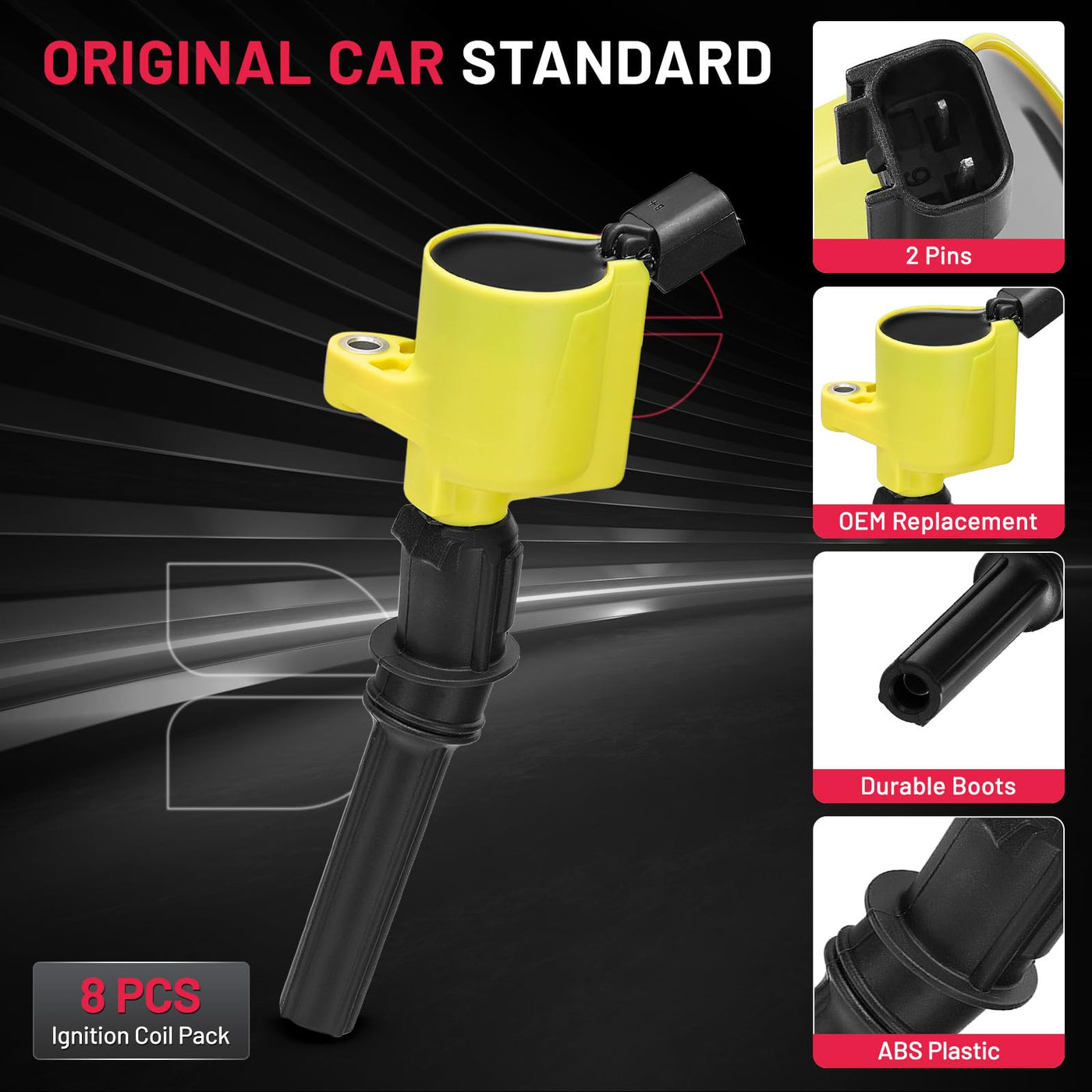 BDFHYK Ignition Coil Pack Set of 8 Compatible with Lincoln Mercury Explorer Crown Victoria F-150 F-250 Mustang 4.6L 5.4L V8 Engi