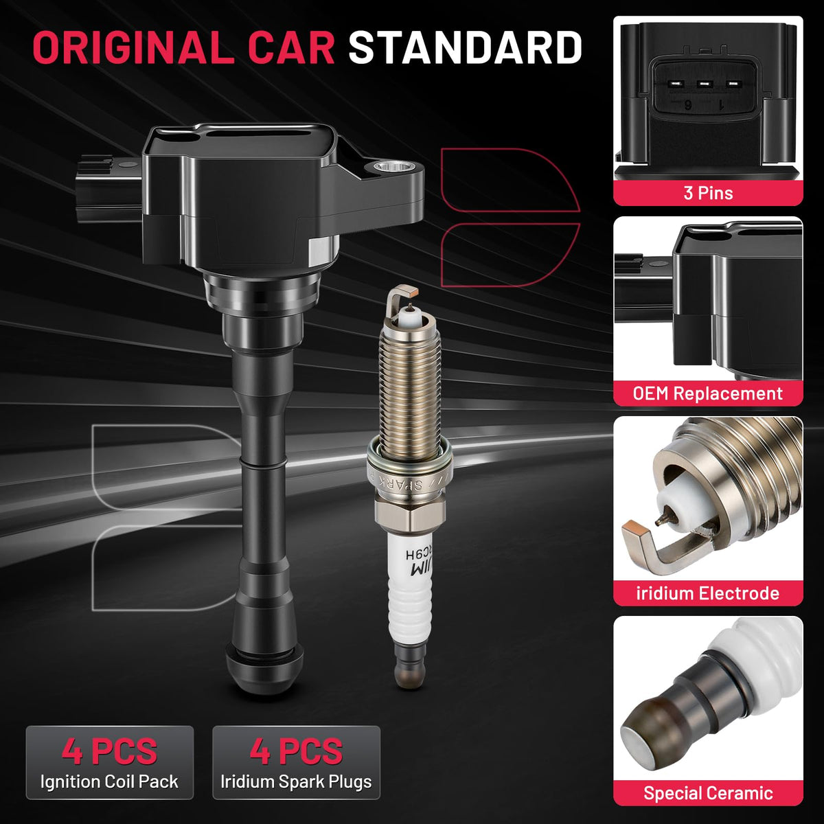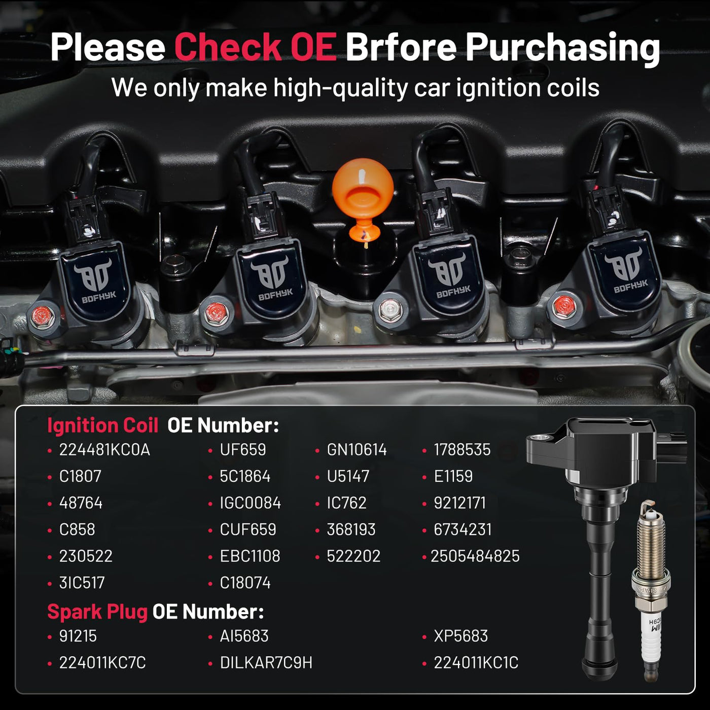 Bdfhyk Ignition Coil Pack Uf659 And Iridium Spark Plugs 91215 Compatible With Nissan Juke 2011-2017 1.6L L4 Replacement For Gn10