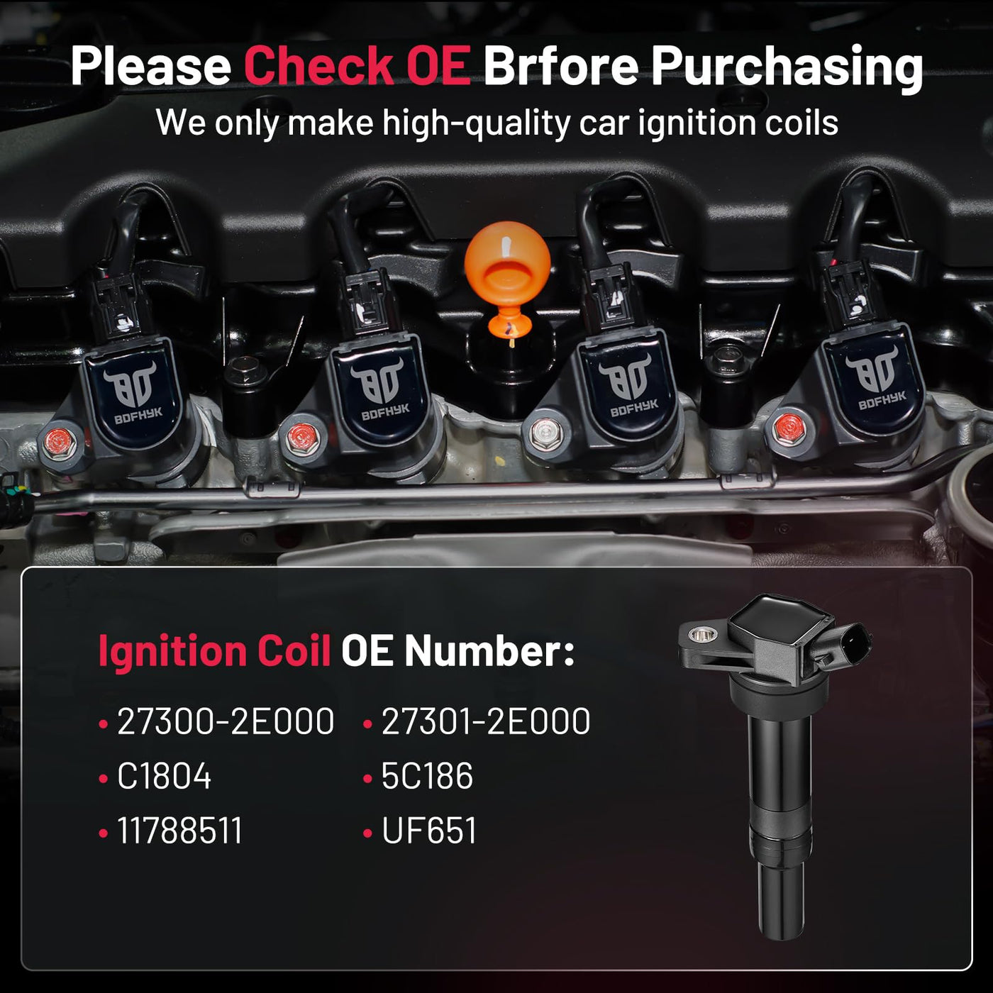 BDFHYK Ignition Coils Pack Compatible with Hyundai Elantra GT Coupe Tucson Kia Soul Forte l4 2.0L 1.8L Coil for UF651 27300-2E00