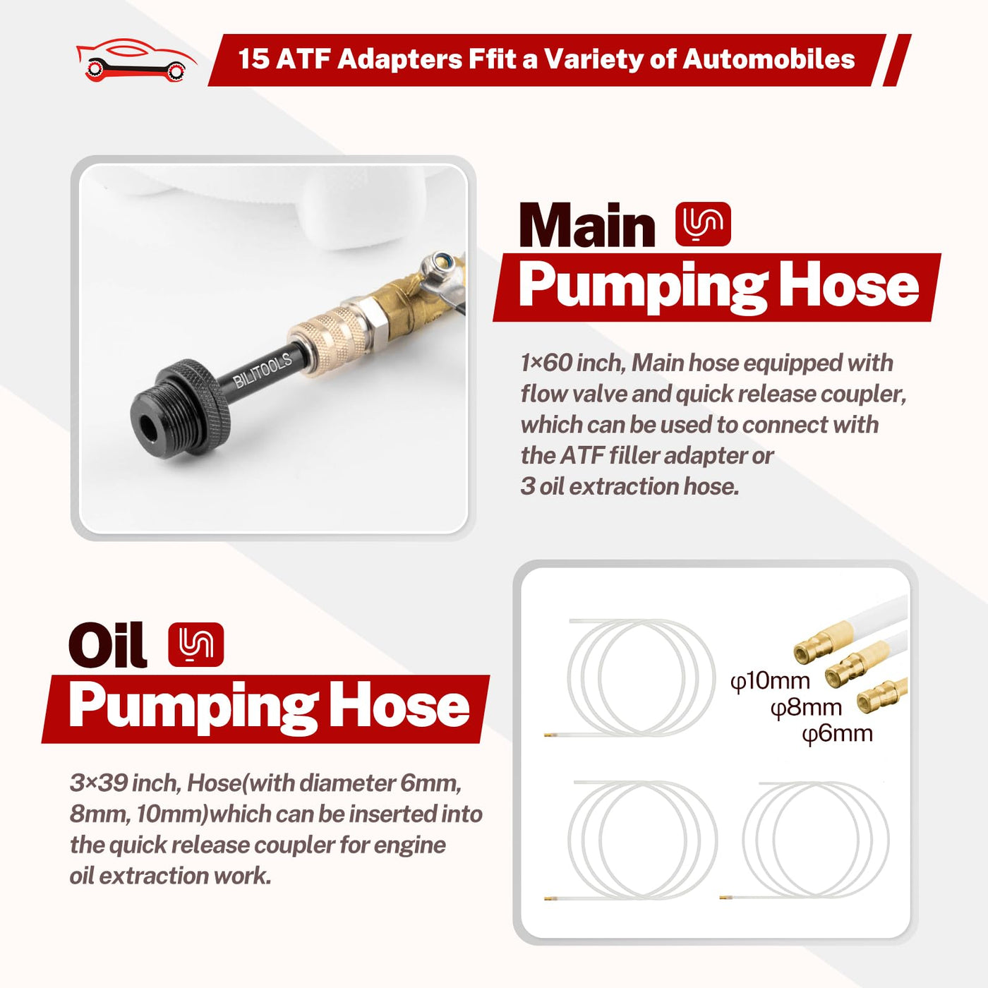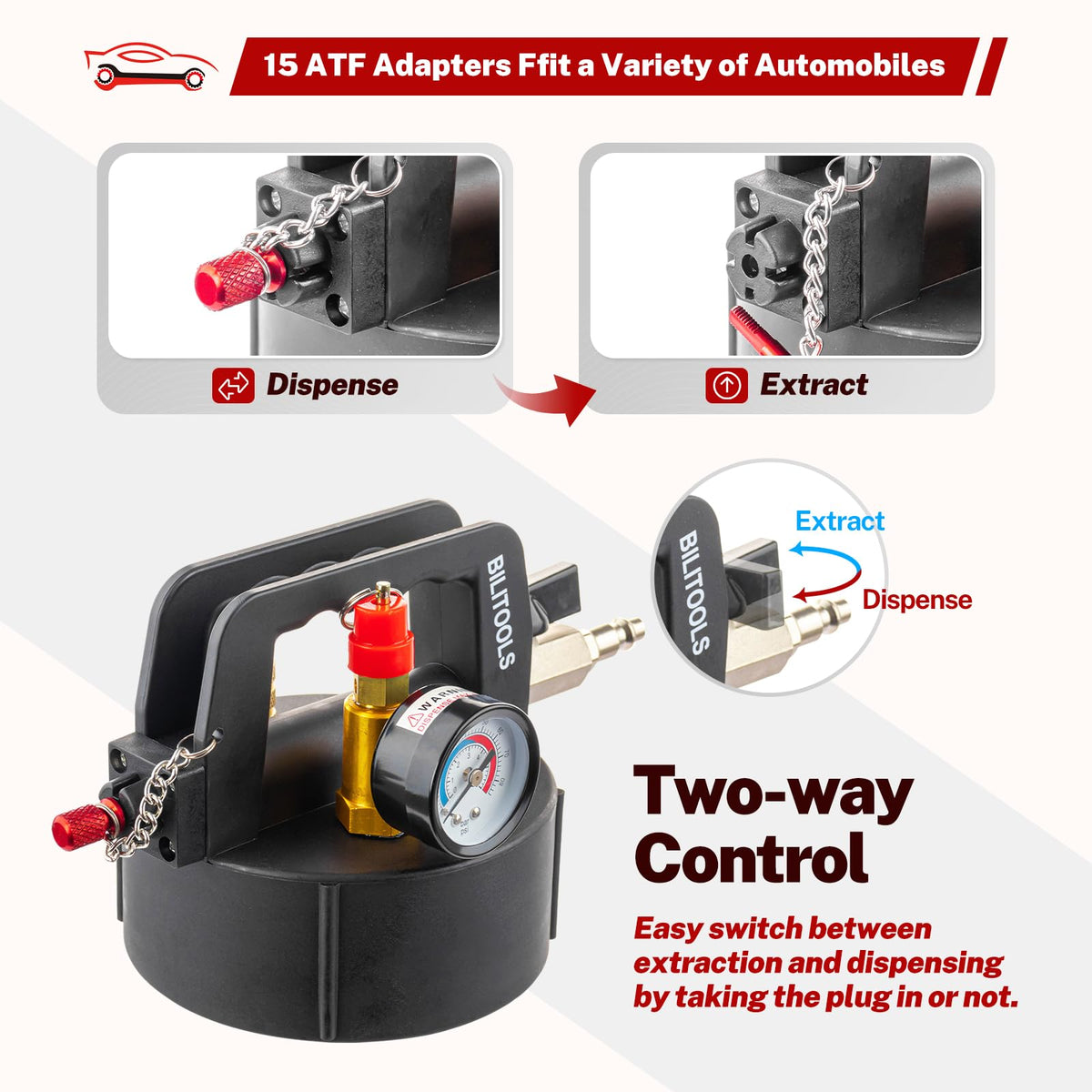 Bilitools Transmission Fluid Transfer Pump Air Operated, 8L (2.1 Gallons) Automatic Pneumatic Vacuum Oil Fluid Extractor Dispens