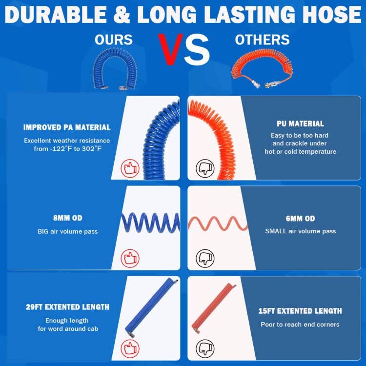 Boeray Heavy Duty Truck Air Duster Blow Gun Cleaning With 9 Meter Long Coil And 2 Interchangeable Nozzle Tips- Blue Air Seat Blow Gun Kit Complete Kit Splices Into Air Seat Supply For Use On Trucks With Air Ride Seat Systems, The Air Seat Blow Gun Kit Is Used To Clean From The Cab To The Sleeper Notice:The Kit Fits Od 6Mm Air Hose Includes 2 Interchangeable Nozzle Tips, Easily Gets Into Tight Spaces, The Air Blow Gun Kit Is Convenient For Drying Off Fluids, Clearing Debris, And Much More Includes 9 Meter Long Coil Coiled, Burst Pressure Up To 120 Psi, Meet Your Normally Use