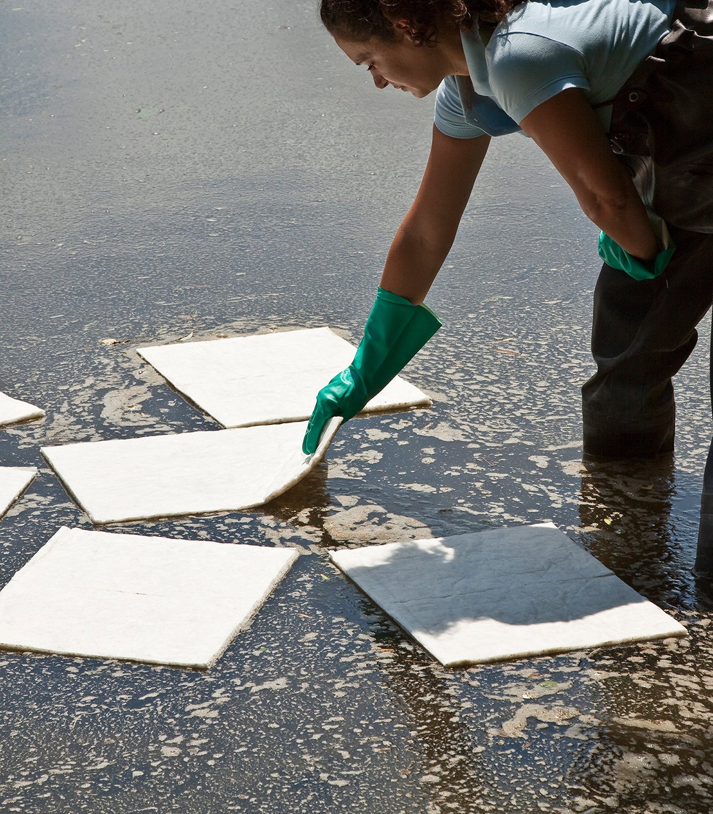 Q: Are these absorbent pads safe for use in industrial environments?A: Yes, the Brady SPC BPO500 pads are made from chemical-resistant meltblown polypropylene, making them suitable for both industrial and environmental applications.