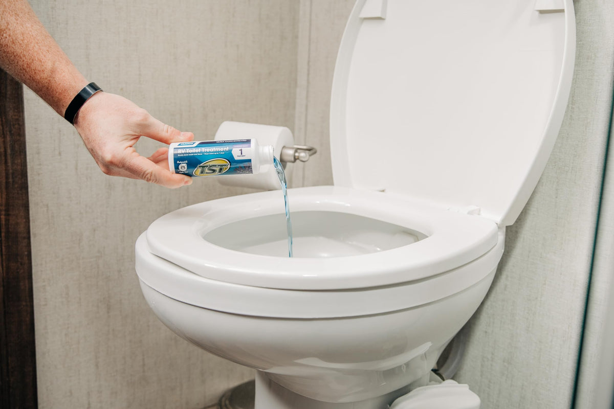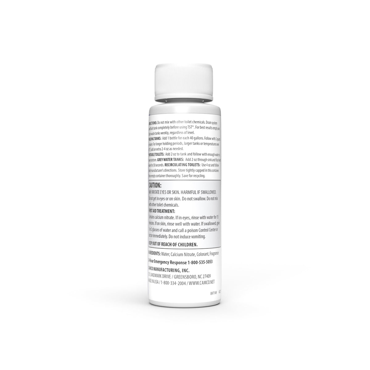 Q: How does Camco TST MAX RV Toilet Treatment work?A: Camco TST MAX RV Toilet Treatment utilizes an ultra-concentrated formula that helps control odors and break down waste and tissue in your RV or marine waste holding tank. Each bottle treats up to a 40-gallon tank and effectively stops odors for up to 7 days.