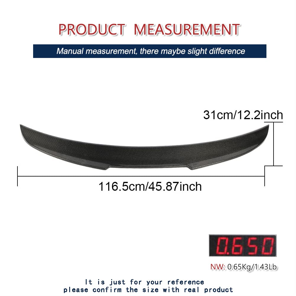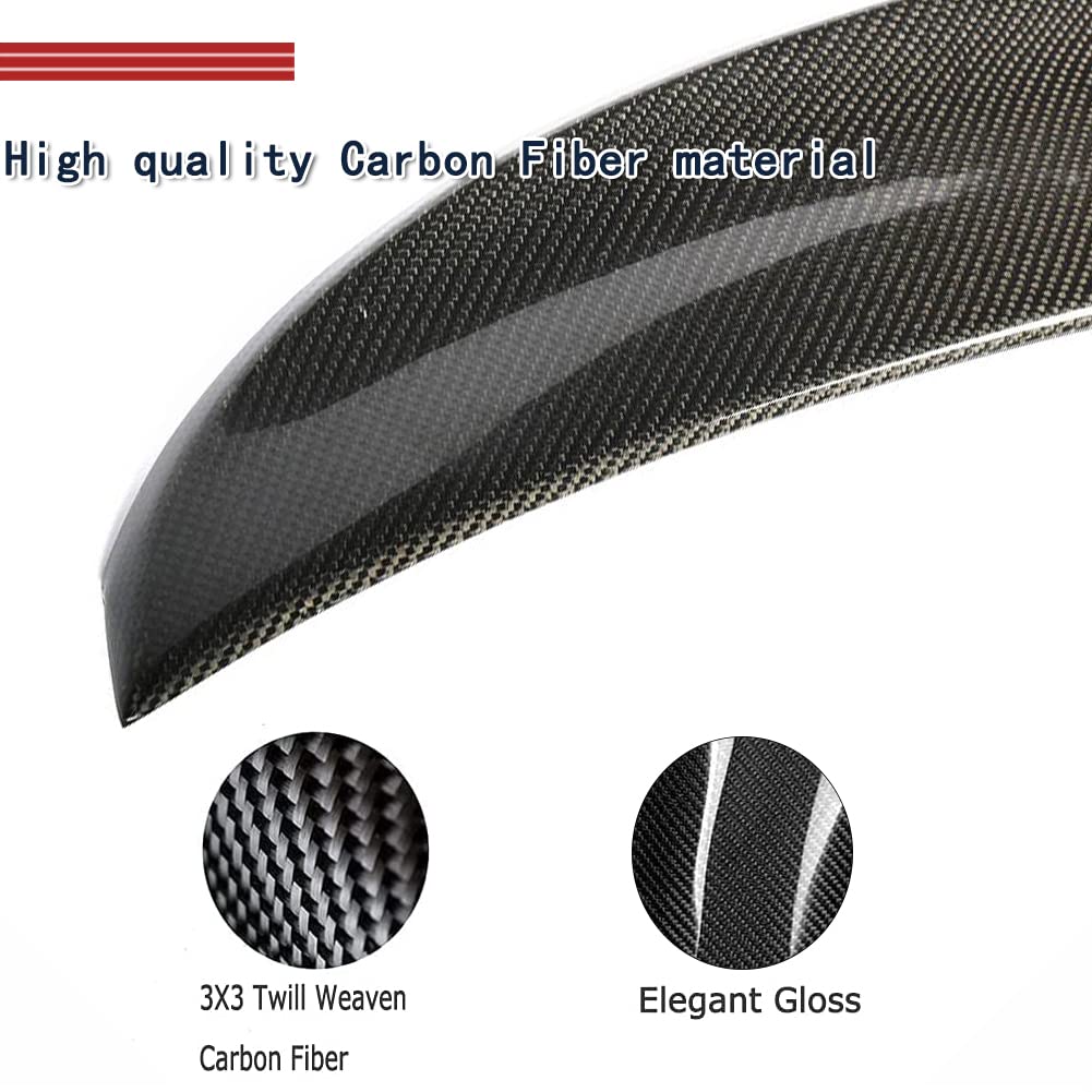 Q: What materials are used in the construction of this trunk spoiler?A: The trunk spoiler is made from high-quality carbon fiber, known for its durability, high tensile strength, and lightweight properties, making it an excellent choice for automotive applications.