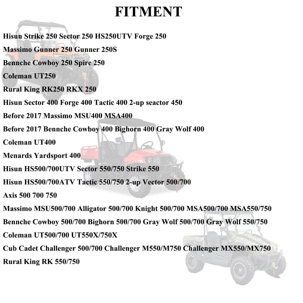 Q: What vehicles are compatible with the Chikia Hisun Oil Filter?A: The Chikia Hisun Oil Filter is compatible with a wide range of vehicles, including Massimo, Hisun, Bennche, Coleman, Axis, and Cub Cadet ATVs and UTVs with engine sizes ranging from 250cc to 750cc. It fits both carbureted and EFI engines and is designed for models from 2008 to the present.