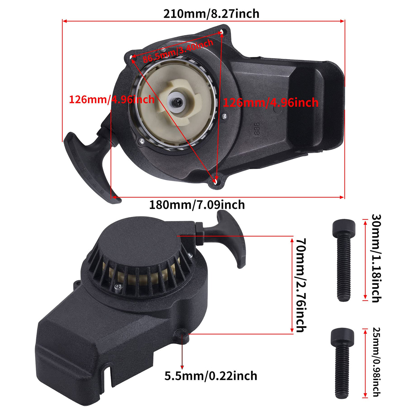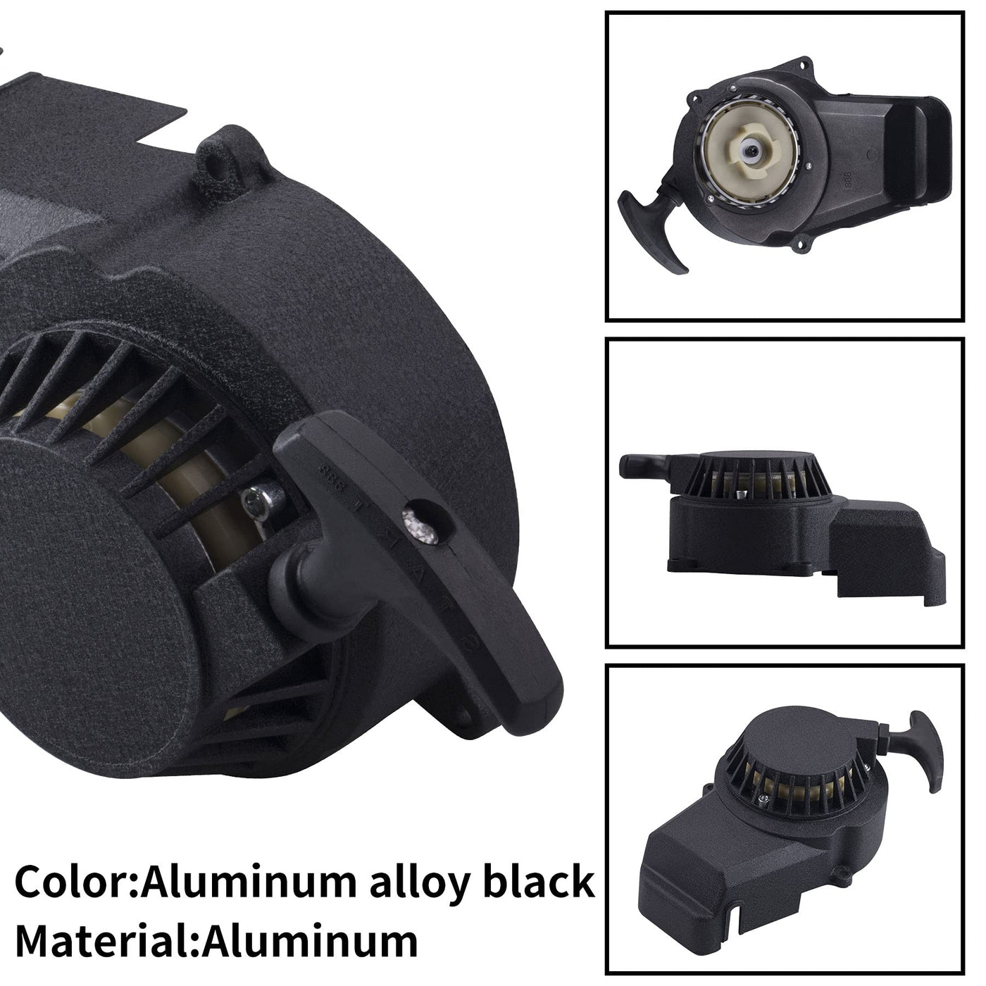 Q: What materials are used in the construction of the pull start?A: This pull start is made of aluminum alloy, featuring a plastic inner cog that enhances durability and reduces the risk of fractures or breakage during operation.
