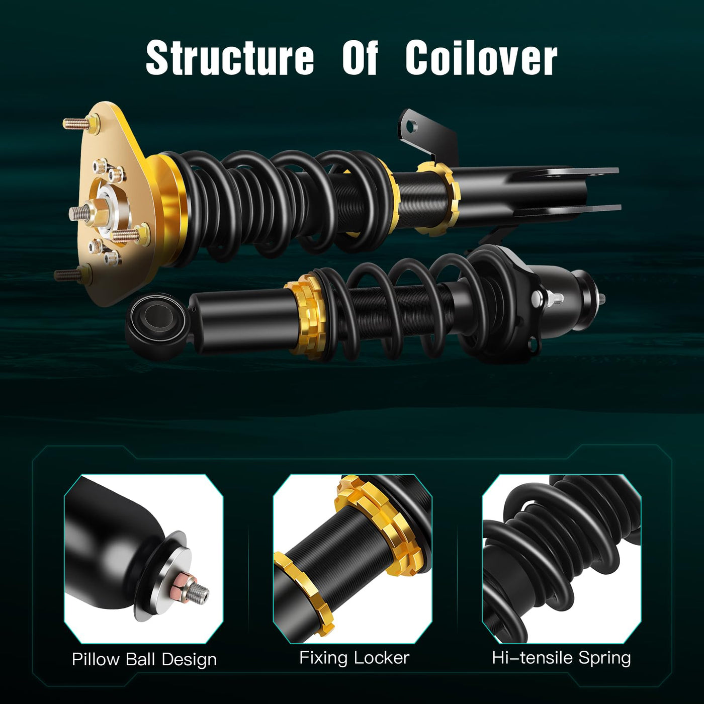 Suitable For The Coilover Suspensions Kits 2017 For Toyota Corolla 50Th Anniversary Special Edition Sedan 4-Door 1.8L 2009-2011, 2017 For Toyota Corolla Base Sedan 4-Door 1.8L 2017 For Toyota Corolla C Sedan 4-Door 1.8L 2009-2017 For Toyota Corolla Ce Sedan 4-Door 1.8L 2012-2017 For Toyota Corolla L Sedan 4-Door 1.8L 2014 For Toyota Corolla Le Eco Plus Sedan 4-Door 1.8L 2014-2017 For Toyota Corolla Le Eco Sedan 4-Door 1.8L 2009-2017 For Toyota Corolla Le Sedan 4-Door 1.8L 2009-2016 For Toyota Corolla S Sedan 4-Door 1.8L 2017 For Toyota Corolla Se Plus Sedan 4-Door 1.8L 2017 For Toyota Corolla Se Sedan 4-Door 1.8L 2016 For Toyota Corolla Special Edition Sedan 4-Door 1.8L 2009-2010, 2017 For Toyota Corolla Xle Sedan 4-Door 1.8L 2009-2013 For Toyota Corolla Xrs Sedan 4-Door 2.4L 2017 For Toyota Corolla Xse Sedan 4-Door 1.8L 2009 For Toyota Matrix Base Wagon 4-Door 1.8L 2009 For Toyota Matrix S Wagon 4-Door 2.4L 2009 For Toyota Matrix Xr Wagon 4-Door 2.4L