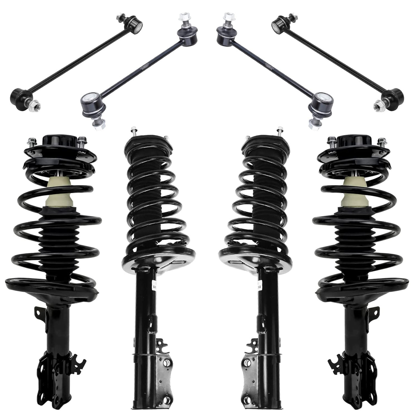 Kit Includes: 1x Front Right Ready Strut - 531678 1x Front Left Ready Strut - 531679 1x Front Stabilizer / Sway Bar End Link (Driver) - K90311 1x Front Stabilizer / Sway Bar End Link (Passenger) - K90312 1x Rear Right Ready Strut - 531680 1x Rear Left Ready Strut - 531681 2x Rear Stabilizer / Sway Bar End Link - K90313 Fitment: Replacement for 1997-2001 Toyota Camry (2.2L Only (Built Before 7/01 Production Date)) Replacement for 1999-2003 Toyota Solara (2.2L & 2.4L Models Only (Built Before 6/03 Production Date)) Introduction: Detroit Axle is a leading global retailer and distributor of OE re-manufactured and new aftermarket auto parts. We are committed to providing first-class products and outstanding customer service at an incredible value. Our rapidly-expanding product line includes CV Axles, Wheel Hub & Bearings, Suspension & Chassis parts, Complete Strut Assemblies, Shock Absorbers, Drilled & Slotted Brake Rotors, Conventional Brake Rotors, Ceramic Brake Pads, Rack & Pinion Assemblies, Gearboxes, Drive Shafts, and more.
