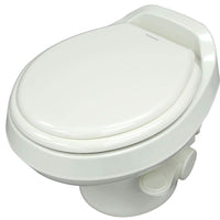 Dometic 300 series gravity-flush toilets offer powerful triple jet action that removes waste completely, plus an innovative drop away ball and valve system. These full-size residential-style toilets feature efficient foot pedal operation with adjustable water level. 300 series toilets replace any standard-height RV toilet (two-bolt, four-bolt, and angled two-bolt styles) not installed on a raised platform. Some installations may require a Dometic floor flange adapter kit. Contemporary styling White or bone finish Triple-jet bowl rinse for 360-degree cleaning action Innovative drop-away ball and valve system Full-size residential style seat Extremely low flush technology uses as little as 1 pint/.5 liter per flush Two-bolt installation with quick-access water connection Hands-free foot pedal operation with adjustable water level Easy serviceability with modular componentsDometic's Two-Year Protection Plus warranty