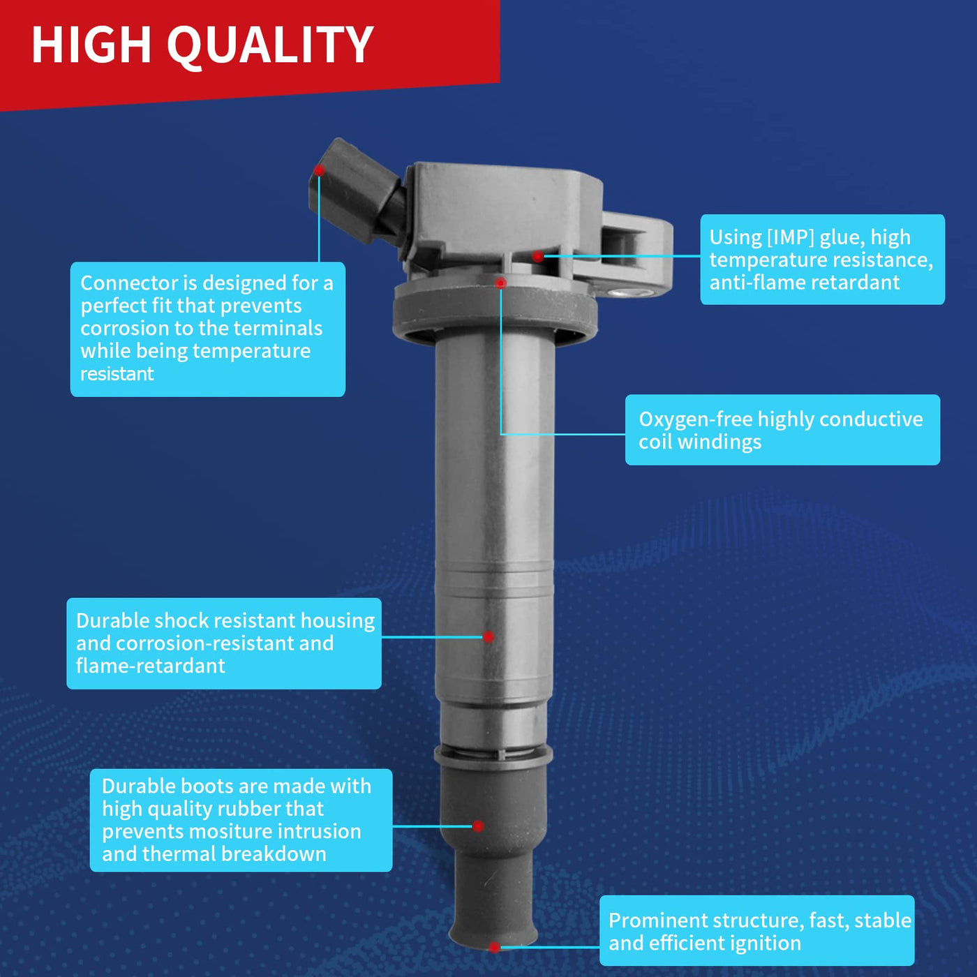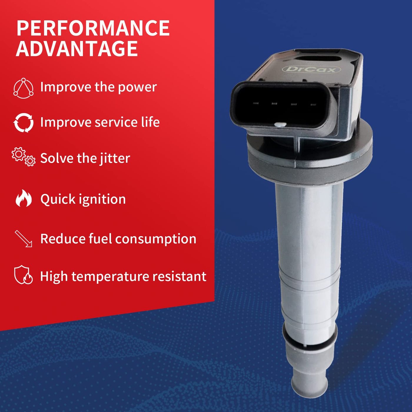 ALL ITEMS ARE BRAND NEW Package Including: 1 x New Ignition Coil Common Symptoms of a Faulty Coil Pack: A rough idle A noticeable lack of power An unexplainably louder-than-usual engine A significant drop in RPMs while accelerating for no apparent reason A blinking or intermittently activating check engine light An active gas warning light when the vehicle has plenty of gasoline Smoke from the exhaust emitting intermittently, instead of in a steady stream If your car has the above symptoms, it is highly recommended to replace the ignition coil in time for your driving safety. Why Choose Our Coils? 100% Factory tested Ready to use, Direct Replacement Built to strict quality control standards Use highest grade material with OE+ durability Durable and reliable under extreme conditions while Provide high Electrical, Corrosion, and Abrasion Resistance Part Numbers: 610-58651 / 90919-02248 / 9091902248 / 90919-02260 / 9091902260 / 90919-A2001 / 90919A2001 / 90919-A2002 / 90919A2002 / 90919-T2005 / 90919T2005 / 90919-T2006 / 90919T2006 / C1426 / UF-495 / UF495 Applications and Compatability 2008-2014 Lexus IS F 5.0L V8 2016-2017 Lexus GS F 5.0L V8 2015-2016 Lexus RC F 5.0L V8 2008-2015 Scion xB 2.4L L4 2003-2009 Toyota 4Runner 4.0L V6 2010 Toyota 4Runner 2.7L L4 2006-2011 Toyota Camry 2.4L L4 2007-2009 Toyota FJ Cruiser 4.0L V6 2011-2012 Toyota Matrix 2.4L L4 2007-2008 Toyota Solara 2.4L L4 2005-2017 Toyota Tacoma 2.7L L4 2005-2015 Toyota Tacoma 4.0L V6 2005-2014 Toyota Tundra 4.0L V6 About Us DrCax are automotive-related brand,supplying mainly high quality auto parts for all over the world.Experienced in OEM service and Tuning parts for years.