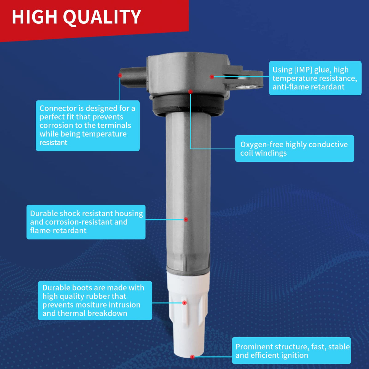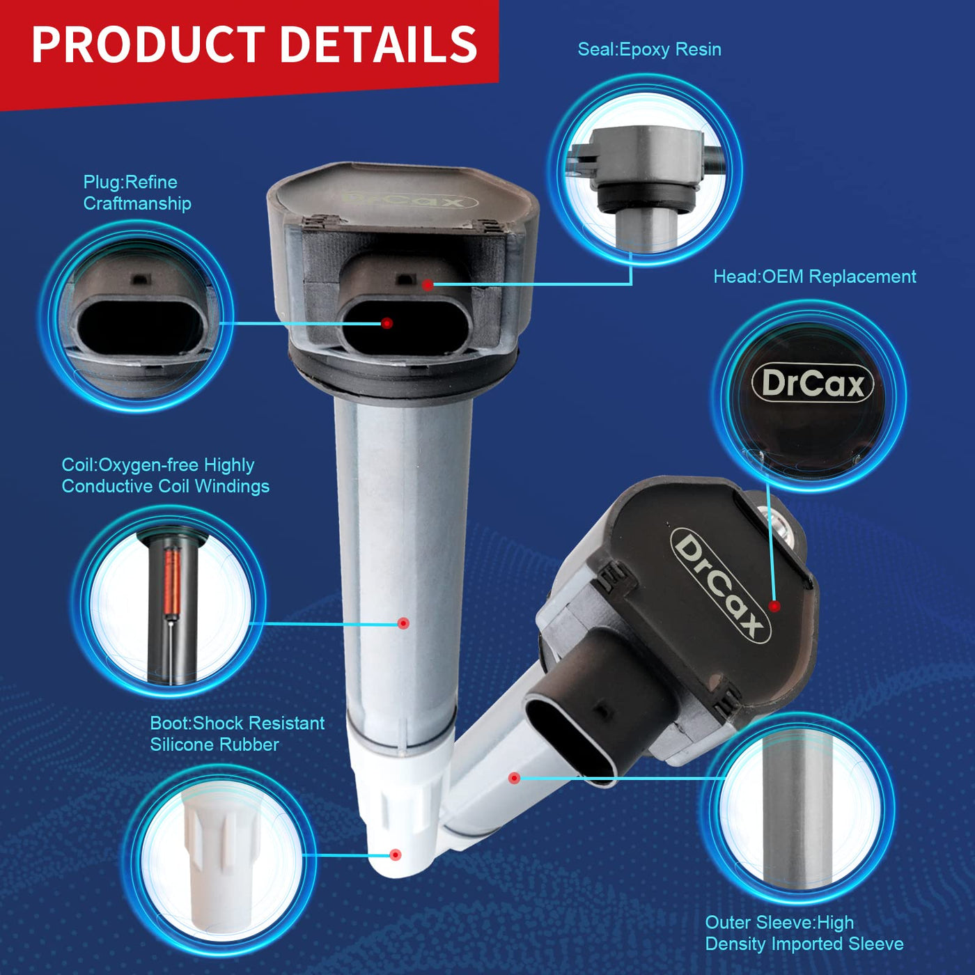 ALL ITEMS ARE BRAND NEW Package Including: 1 x New Ignition Coil Common Symptoms of a Faulty Coil Pack: A rough idle A noticeable lack of power An unexplainably louder-than-usual engine A significant drop in RPMs while accelerating for no apparent reason A blinking or intermittently activating check engine light An active gas warning light when the vehicle has plenty of gasoline Smoke from the exhaust emitting intermittently, instead of in a steady stream If your car has the above symptoms, it is highly recommended to replace the ignition coil in time for your driving safety. Why Choose Our Coils? Ready to use, Direct Replacement Use highest grade material with OE+ durability Durable and reliable under extreme conditions while Provide high Electrical, Corrosion, and Abrasion Resistance Part Numbers: UF-502, UF502, C1522, 5C1565, 610-00108, C533, 5C1094, E252, E1002, C1178, 4606869AA, 4606869AB, 4606869AC, 4606869AD Applications and Compatability 2007-2008 Chrysler Pacifica V6 4.0L 2006-2010 Chrysler Sebring V6 2.7L 2007-2010 Chrysler Sebring V6 3.5L 2008-2010 Chrysler Town & Country V6 4.0L 2006-2010 Chrysler 300 V6 2.7L 2006-2010 Chrysler 300 V6 3.5L 2008-2010 Dodge Avenger V6 2.7L 2008-2010 Dodge Avenger V6 3.5L 2009-2010 Dodge Challenger V6 3.5L 2006-2010 Dodge Charger V6 2.7L 2006-2010 Dodge Charger V6 3.5L 2008-2010 Dodge Grand Caravan V6 4.0L 2009-2010 Dodge Journey V6 3.5L 2006-2008 Dodge Magnum V6 2.7L 2006-2008 Dodge Magnum V6 3.5L 2011 Dodge Nitro V6 3.7L 2007-2011 Dodge Nitro V6 4.0L 2006 Dodge Stratus V6 2.7L 2009-2010 Volkswagen Routan V6 4.0L About Us DrCax are automotive-related brand,supplying mainly high quality auto parts for all over the world.Experienced in OEM service and Tuning parts for years.