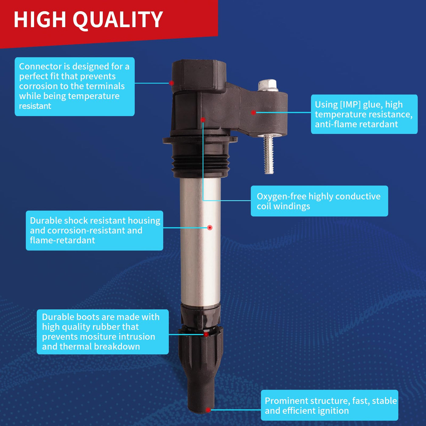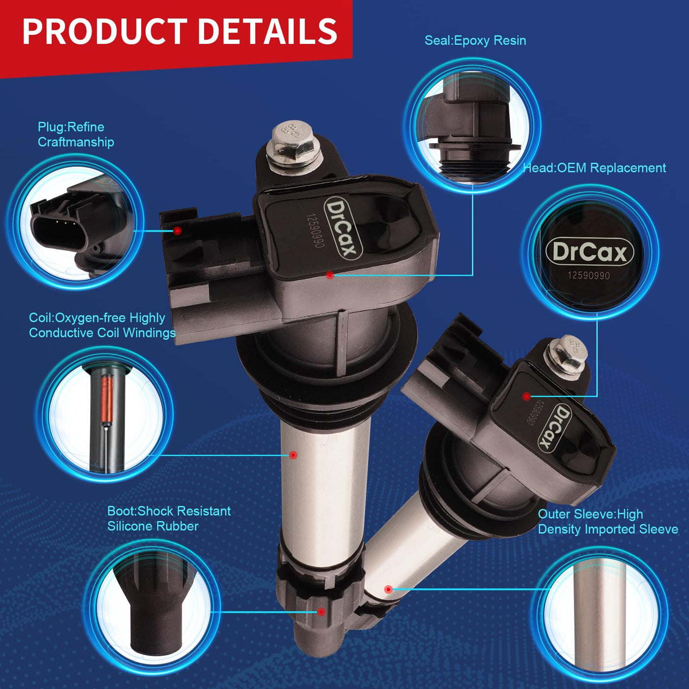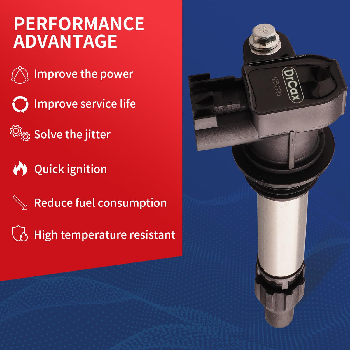 ALL ITEMS ARE BRAND NEWIncluding:1 x New Ignition Coil Common Symptoms of a Faulty Coil Pack: A rough idle A noticeable lack of powerAn unexplainably louder-than-usual engineA significant drop in RPMs while accelerating for no apparent reason A blinking or intermittently activating check engine light An active gas warning light when the vehicle has plenty of gasoline Smoke from the exhaust emitting intermittently, instead of in a steady stream If your car has the above symptoms, it is highly recommended to replace the ignition coil in time for your driving safety. Why Choose Our Coils? 100% Factory tested Ready to use, Direct Replacement Use highest grade material with OE+ durability Durable and reliable under extreme conditions while Provide high Electrical, Corrosion, and Abrasion Resistance Part Numbers: C1555 5c1612 Ic019 Uf569 52-1853, D500C, D597A, 5C1612, E1069, 52-1853, IC649, 12590990, 12610626, 12618542, 12632479, UF-569, 33400-78J02Compatability Fit it 2007-2009 Cadillac SRX 3.6LFit it 2012-2016 Cadillac SRX 3.6LFit it 2007-2008 GMC Acadia 3.6LFit it 2010-2016 GMC Acadia 3.6LFit it 2007-2009 Pontiac G6 3.6L Fit it 2007-2009 Saturn Aura 3.6LFit it 2007-2009 Suzuki XL-7 3.6LFit it 2010-2016 Buick Enclave 3.6LFit it 2013-2015 Chevrolet Equinox 3.6LFit it 2008-2009 Pontiac G8 3.6LFit it 2008-2009 Pontiac Torrent 3.6LFit it 2008-2010 Saturn Vue 3.6LFit it 2008-2012 Chevrolet Malibu 3.6LFit it 2008-2015 Cadillac CTS 3.6L Fit it 2009-2010 Suzuki Grand Vitara 3.2LFit it 2009-2011 Cadillac STS 3.6LFit it 2010-2011 Cadillac SRX 2.8LFit it 2010-2011 Cadillac SRX 3.0L About Us DrCax are automotive-related brand,high quality auto parts for all over the world.Experienced in OEM service and Tuning parts for years.
