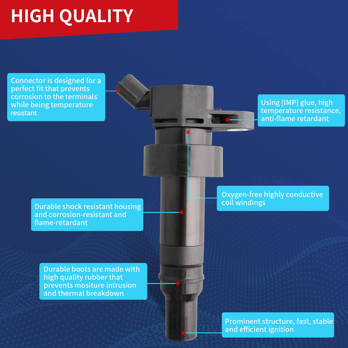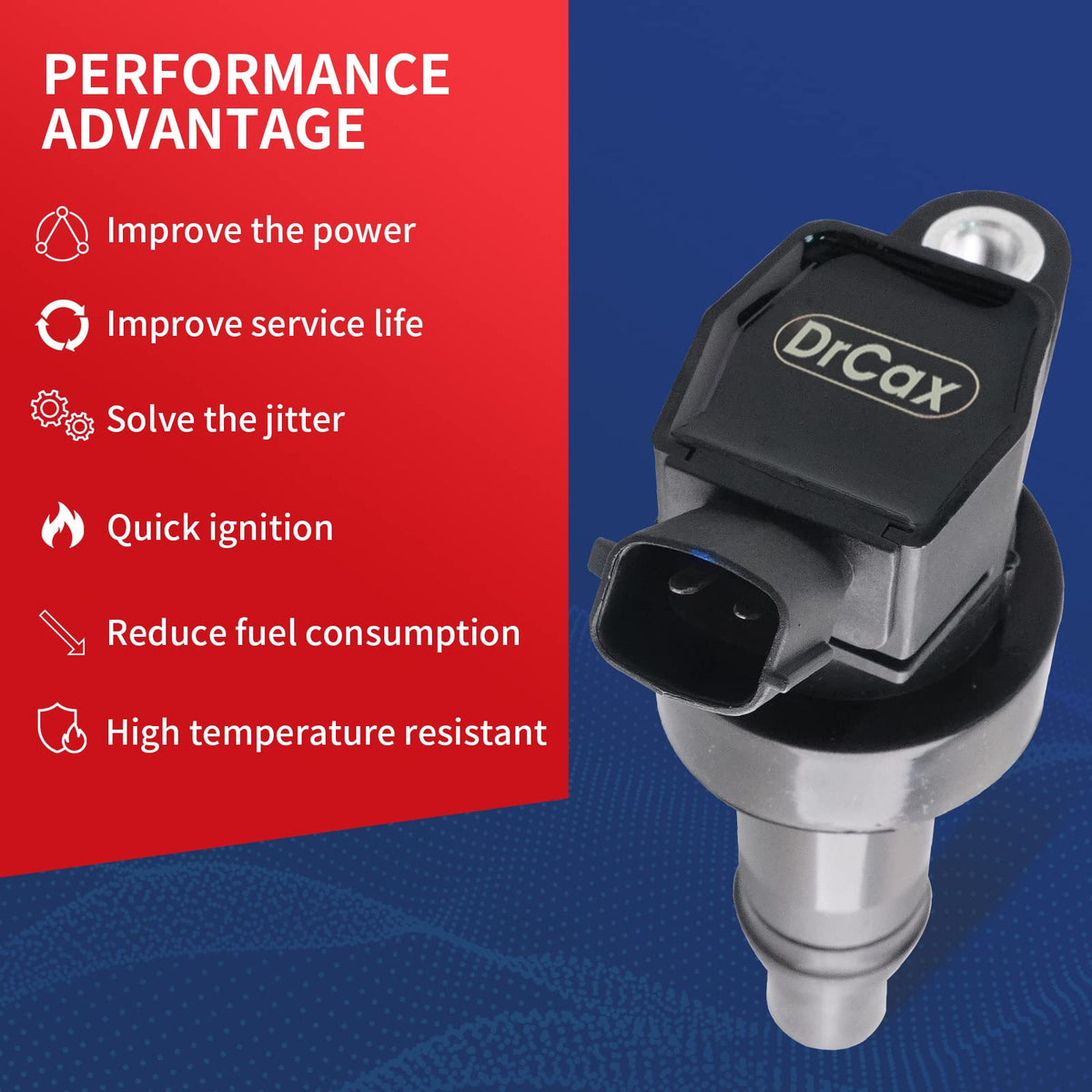 ALL ITEMS ARE BRAND NEW Package Including: 1 x New Ignition Coil Common Symptoms of a Faulty Coil Pack: A rough idle A noticeable lack of power An unexplainably louder-than-usual engine A significant drop in RPMs while accelerating for no apparent reason A blinking or intermittently activating check engine light An active gas warning light when the vehicle has plenty of gasoline Smoke from the exhaust emitting intermittently, instead of in a steady stream If your car has the above symptoms, it is highly recommended to replace the ignition coil in time for your driving safety. Why Choose Our Coils? 100% Factory tested Ready to use, Direct Replacement Built to strict quality control standards Use highest grade material with OE+ durability Durable and reliable under extreme conditions while Provide high Electrical, Corrosion, and Abrasion Resistance Part Numbers: 27301-2B110, UF707, B284, C936, GN10683, 178-8544, E1207 Applications and Compatability 2013-2015 Hyundai Veloster 1.6L L4 Turbo 2014-2016 Kia Forte Koup 1.6L L4 2014-2016 Kia Forte5 1.6L L4 About Us DrCax are automotive-related brand,supplying mainly high quality auto parts for all over the world.Experienced in OEM service and Tuning parts for years.
