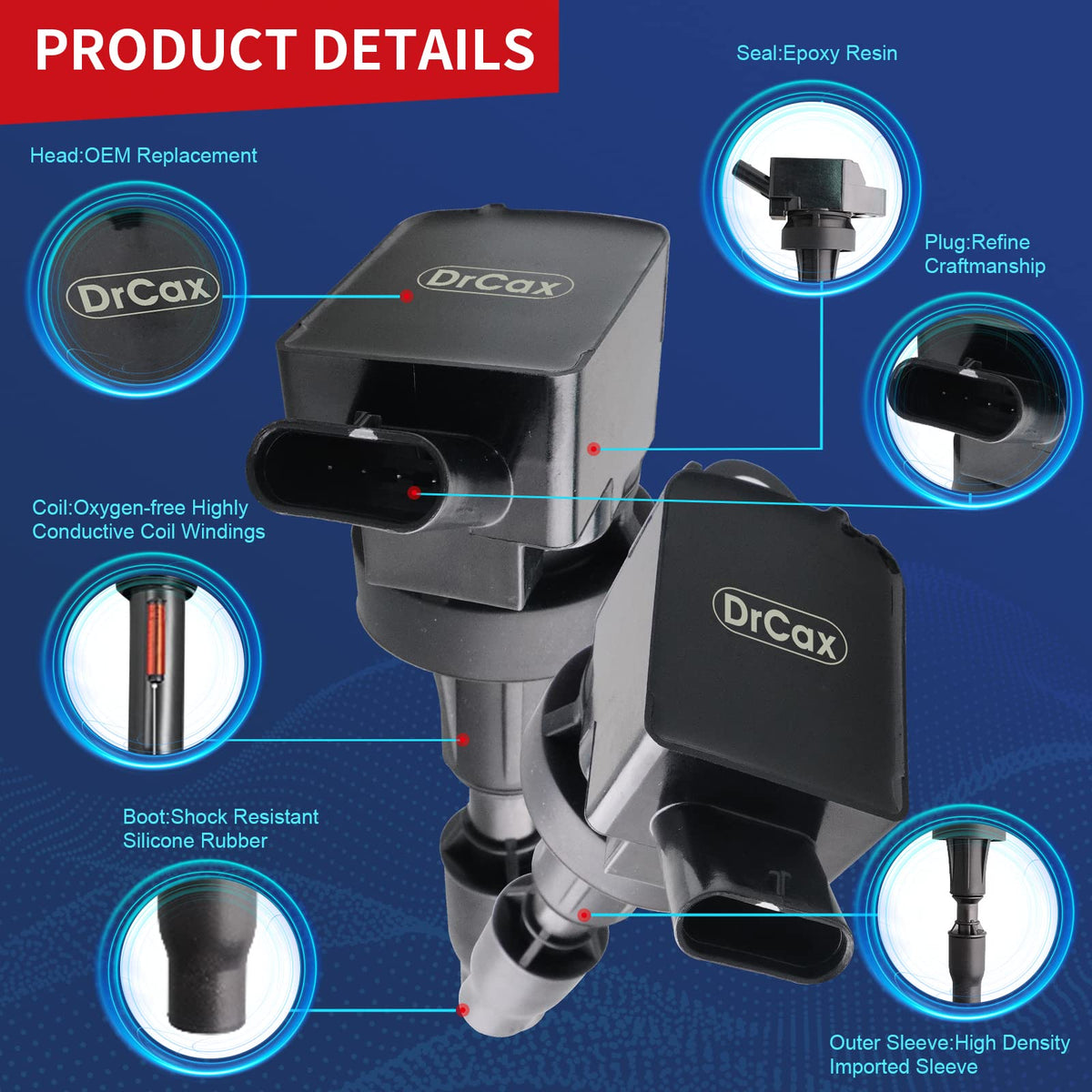 Drcax Oem Ignition Coil Uf817 27301-2B120 Compatible With Elantra 2017-2019 Sonata 2015-2019 Tucson 2016-2018 Kia Forte 2019-202
