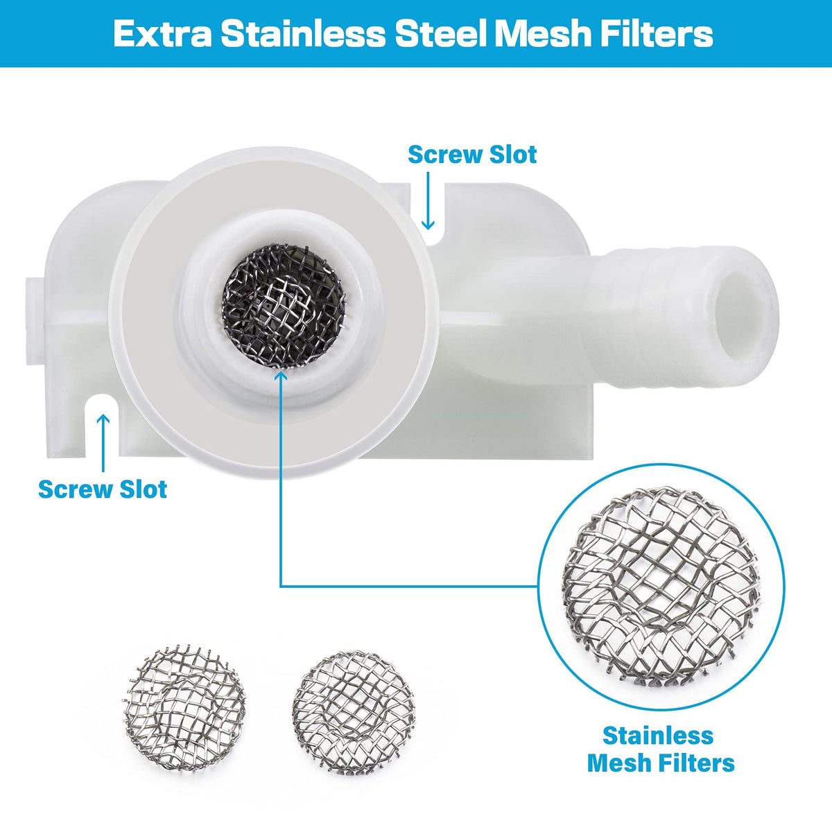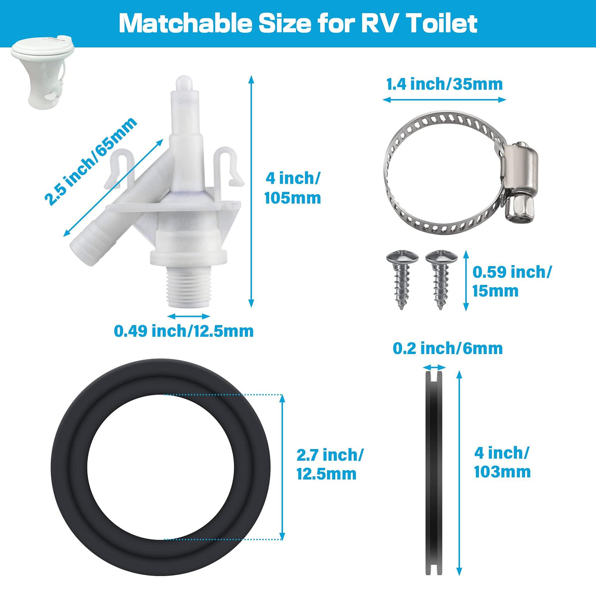 Did you suffer for years with RV toilet leak: If you say yes, this quality rv water valve is exactly what you need. You don't need to order the other toilet, you just need to use a water valve kit to fix the leak. Why choose us: The rv camper toilet valve adopt quality ABS plastic material to improve the serve life and performance of this rv toilet parts. The valve seals are made from a quality, application-specific rubber blend for optimal performance and a long-lasting use Good combination of water valve kit and is convenient for your replacement This toilet valve replacement is compatible with Sealand 300/ 310/ 311/ 320/ 321 RV, Camper, and trailer toilets JUST GO AHEAD AND ADD IT TO YOUR CART It will work nicely to replace your cracked valve. Great fix for leaky valve. Package included: 2 x Water valve kit 2 x Rv toilet ball seal replacement 2 x Hose clamp 4 x Stainless mesh filters 4 x Screws Note: The brands related above are only for purposes of demonstrating compatibility, not use as trademarks, our trademark is Dreyoo.