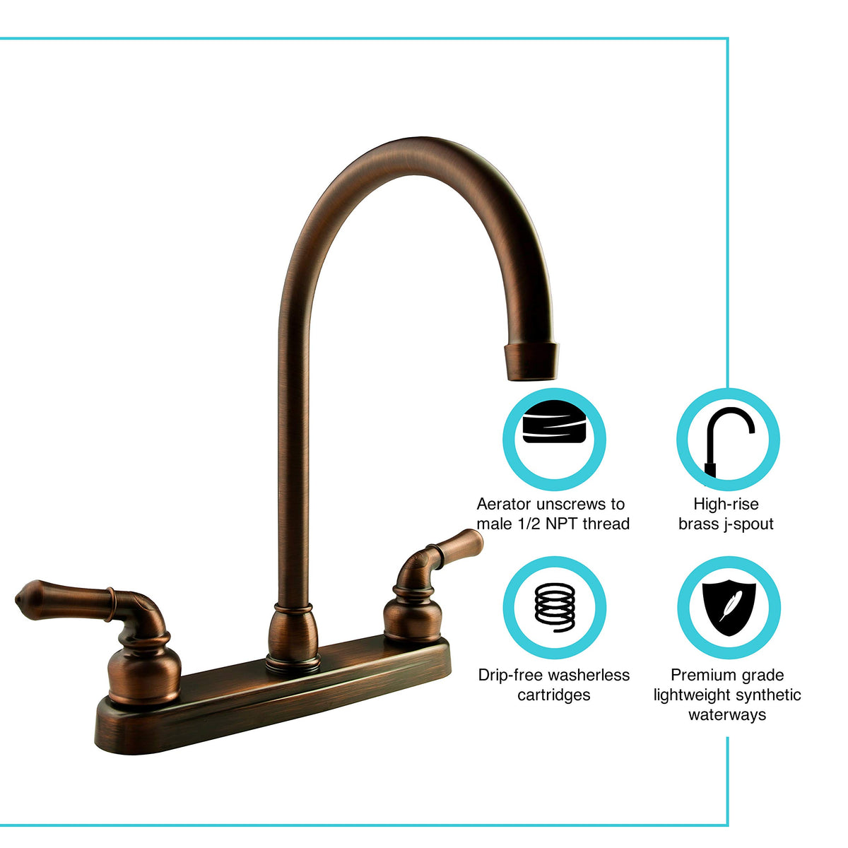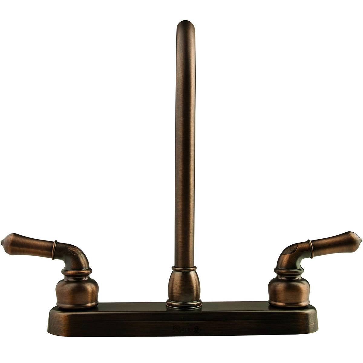 This Elegant J-Spout Hi-Rise Rv Kitchen Faucet With Classical Lever Style Handles Is The Perfect Replacement Faucet For Your Home On The Road. Fits Great With Most Rvs, Campers, Trailers And Fifth (5Th) Wheels. This Rv Faucet Features A Brass Spout With Premium Grade Light Weight Synthetic Waterways. Made From Heavy Materials This Rv Faucet Is Built To Last. Installation Is A Snap. This Faucet By Dura Faucet Is Upc And Cupc Certified With A Flow Rate Of 2.2 Gpm @ 60 Psi, 8.3 L/Min @ 414 Kpa.
