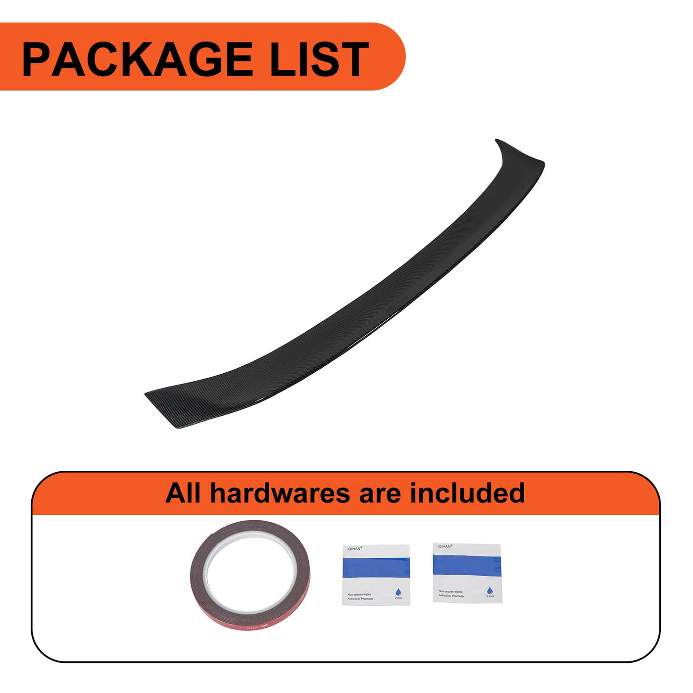 Q: Does the trunk spoiler truly have a carbon fiber appearance?A: While the trunk spoiler features a design that mimics carbon fiber, it is important to note that it is not made of actual carbon fiber but rather a specially treated plastic that provides a stylish look.