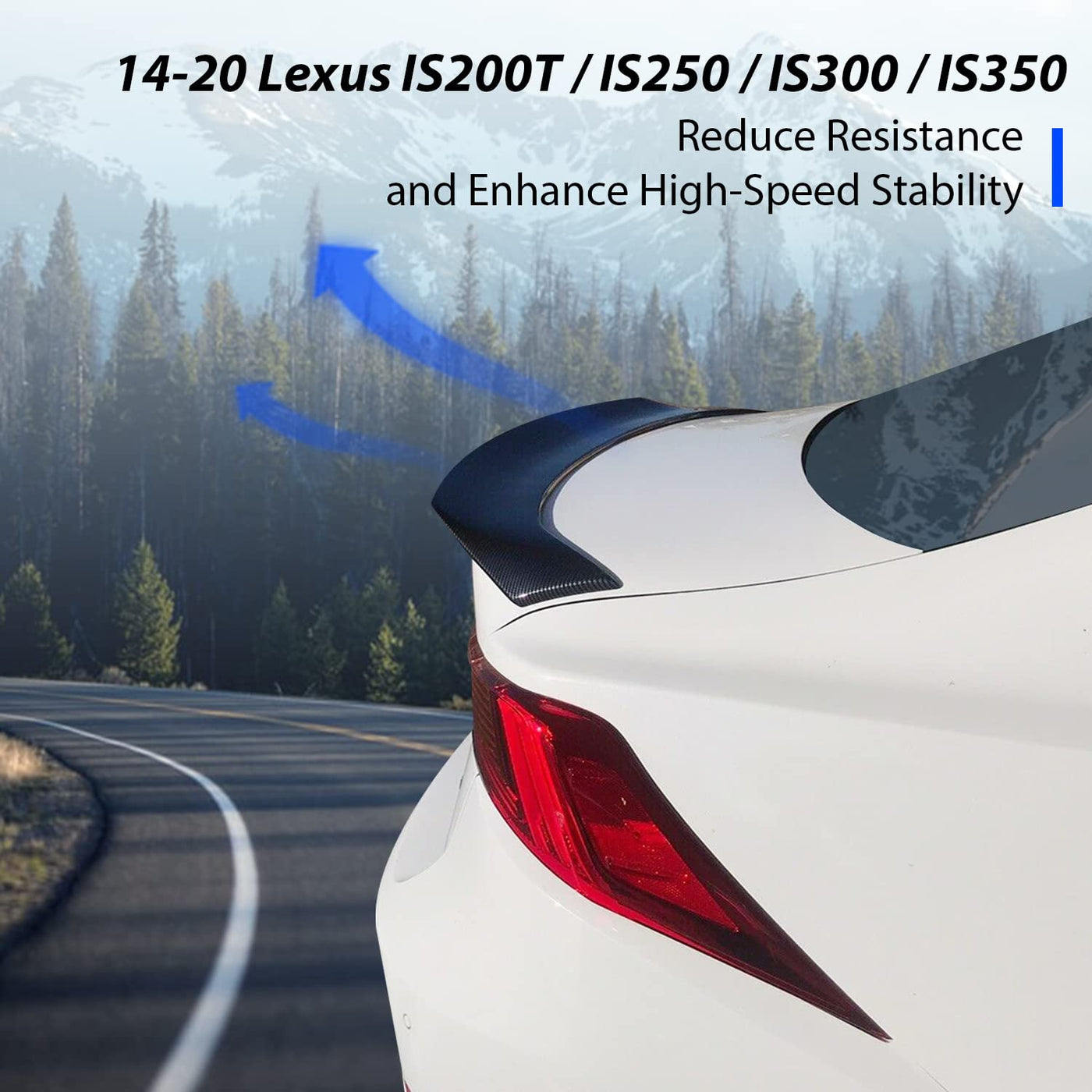 Ecotric Carbon Fiber Style Trunk Spoiler Wing Lid Compatible With 2014-2020 Lexus Is200T Is250 Is300 Is350 | Durable Plasticdescription Compatible With 2014-2020 Lexus Is250 / Is350 / Is300 Awd / Is200T All Models. Sporty Appearance: Instantly Adds Aggressive And Sporty Styling To Your Lexus.Wrap-Around Design Provides A Sleek, Aerodynamic Appearance. Superior Quality: High Quality Auto Grade Light Weight Plastic, Which Means It Has Better Wear Resistance, Aging Resistance, And Aesthetics. Precision And Quality Assured.Built To Strict Quality Control Standards. Easy Installation: It Can Be Installed With 3M Tape. The Package Contains The Necessary Hardware As Shown In The Picture.* Do Not Include Instructions, Professional Installation Is Recommended.* Note: Please Note That The Color Scheme On The Surface Just Looks Like Carbon Fiber, It'S A Special Treatment Process, But It'S Not Made Of Carbon Fiber.It Is Made Of Plastic And Will Withstand Intemperate Weather And Tough Environments.Shipping(Shipping Policy Only Applies To Orders Fulfilled By The Seller) Ecotric Items Will Be Shipped Out In 1 Business Day,No Expedited Service Available. We Ship Our Items To Usa Only(Does Not Include Hawaii,Alaska Or Puerto Rico, Po Boxes/Apo'S ).Contact Us Provide Technical Support At Any Time.Please Feel Free To Tell Us What We Can Do For You,We Will Reply In One Business Day.About Return Within One Month After Receiving The Goods, If You Find Any Defect In The Product, Please Contact Us For Free Replacement. Return Within One Month For Non-Buyer Reasons, Free Return Label And Full Refund Guarantee.(Please Contact Us Directly Through Amazon Message System To Get The Return Label)