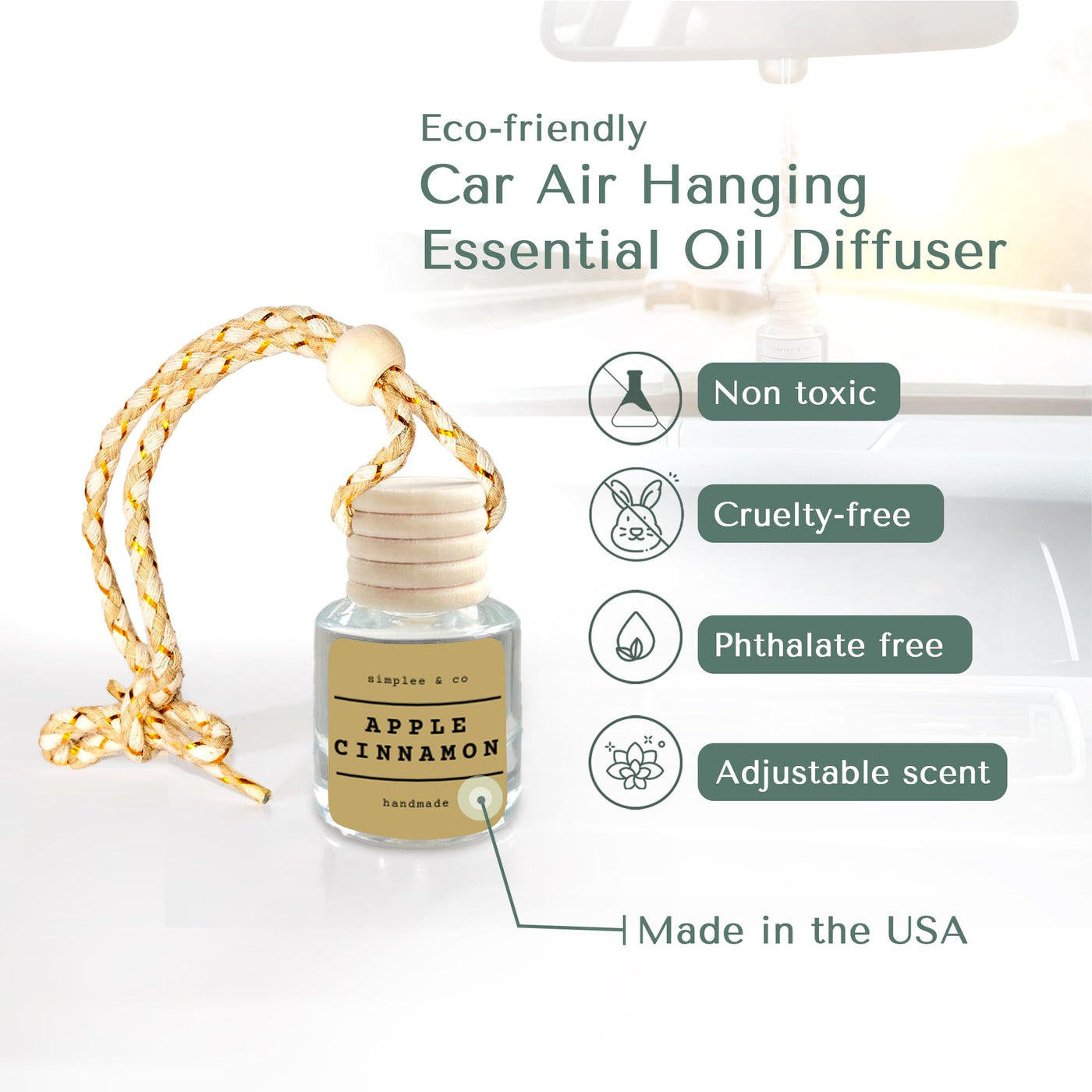 Elevate your driving experience with Simplee & co's elegant car hanging air oil diffusers. Explore our varied collection of fragrances to tailor the scent and ambiance of your vehicle to reflect your unique style. Crafted with high-quality USA Made Fragrance Oil, each diffuser delivers a superior and long-lasting scent. Simply tilt the diffuser towards the wooden cap to refresh the fragrance as needed. With proper care, enjoy up to 90 days of continuous, enchanting aroma, making every journey more enjoyable. Enhance your vehicle's atmosphere with a touch of sophisticated flair. Each order includes 2 oil diffusers. Eucalyptus Forest Top: Fresh Eucalyptus Middle: Peppermint Leaf Bottom: White Cedar Teakwood Mahogany Top Notes: Delicate teakwood Middle Notes: Warm mahogany Base Notes: Rich, woody undertones Midnight Black Ice (similar to Black Ice) Top Notes: Fresh bergamot Middle Notes: Wild lavender, understated florals Base Notes: Sandalwood, musk Fruity Rings (similar to Fruit Loops) Top Notes: Citrus zest, fruity sweetness Middle Notes: Cereal grain Base Notes: Vanilla, sugar Salted Caramel Top Notes: Coconut, caramelized sugar Middle Notes: Silky caramel vanilla Base Notes: Hint of salt Sandalwood Rose Top Notes: Delicate rose petals, fresh greenery Middle Notes: Rich earthy wood Base Notes: Soft musk Pink Sugar Top Notes: Sweet berries, fig leaves Middle Notes: Licorice, orange Base Notes: Cotton candy, caramel, powdery accents Baja Cactus Blossom Top Notes: Fresh florals, subtle coconut Middle Notes: Light floral blend Base Notes: Musk, sandalwood Balsam Fir Top: Green Middle: Pine Bottom: Wood, Musk Apple Cinnamon Top: Green, Apple Middle:Peach, Cinnamon, Clove Bottom:Tonka Pumpkin Spice Latte Top: Butter Middle: Cinnamon, Clove Bottom: Coconut, Tonka, Black Coffee Eucalyptus & Spearmint Top: Mint Middle: Eucalyptus Bottom: Musk Be Enchanted Top: Green Apple, Peach, Juicy Middle: Dew Rose, Water Lily Bottom: Cedar, Sandalwood, Vetiver, Musk Ocean Shore Linen Top: Fresh, Melon, Dewy Greens Middle: Fir Needles, Eucalyptus, Cyclamen, Aquatic Bottom: Sea Moss, Sandalwood, Cedarwood, Musk