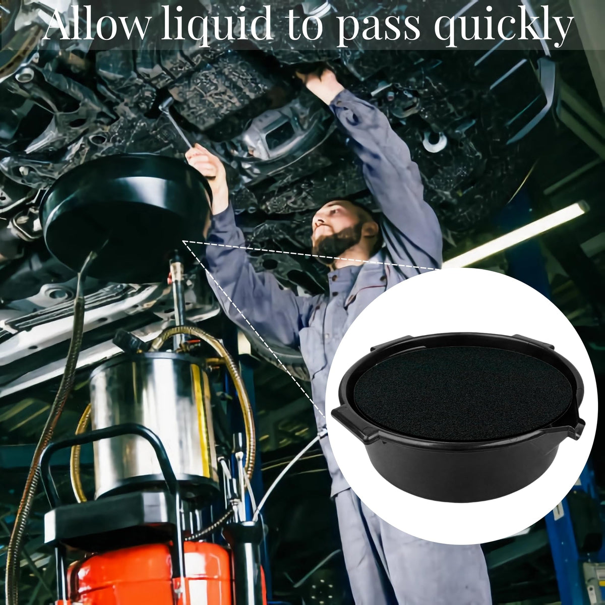 Professional oil drain mats to meet your various needs Diameter of 15 inches (38 cm) and thickness of 0.79 inches (2 cm). Designed to allow fluids to pass quickly, protecting floors from messy oil splatters. Simply insert into transmission drain funnels or larger oil drain pans before an oil change to reduce oil splatter. Trim according to your specific needs to achieve a perfect fit. Innovative design prevents oil from hitting plastic plates directly, keeping oil away from your face and clothes during changes. Resists engine oil, transmission fluid, coolant, brake fluid, brake cleaner, gear oil, and more. Porous material ensures fluids pass through into funnel or pan. Crafted from high-quality sponge material, soft and comfortable, ideal for cleaning or repairing your vehicle. Important note: Not suitable for coolants or fluids recycled in the vehicle, as material fibers may contaminate the fluid.