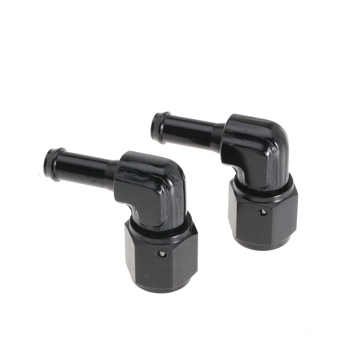Female 6AN to 5/16 Hose Fuel Fittings 90 Degree Swivel Oil Line Pipe Adapter Black 2PCS