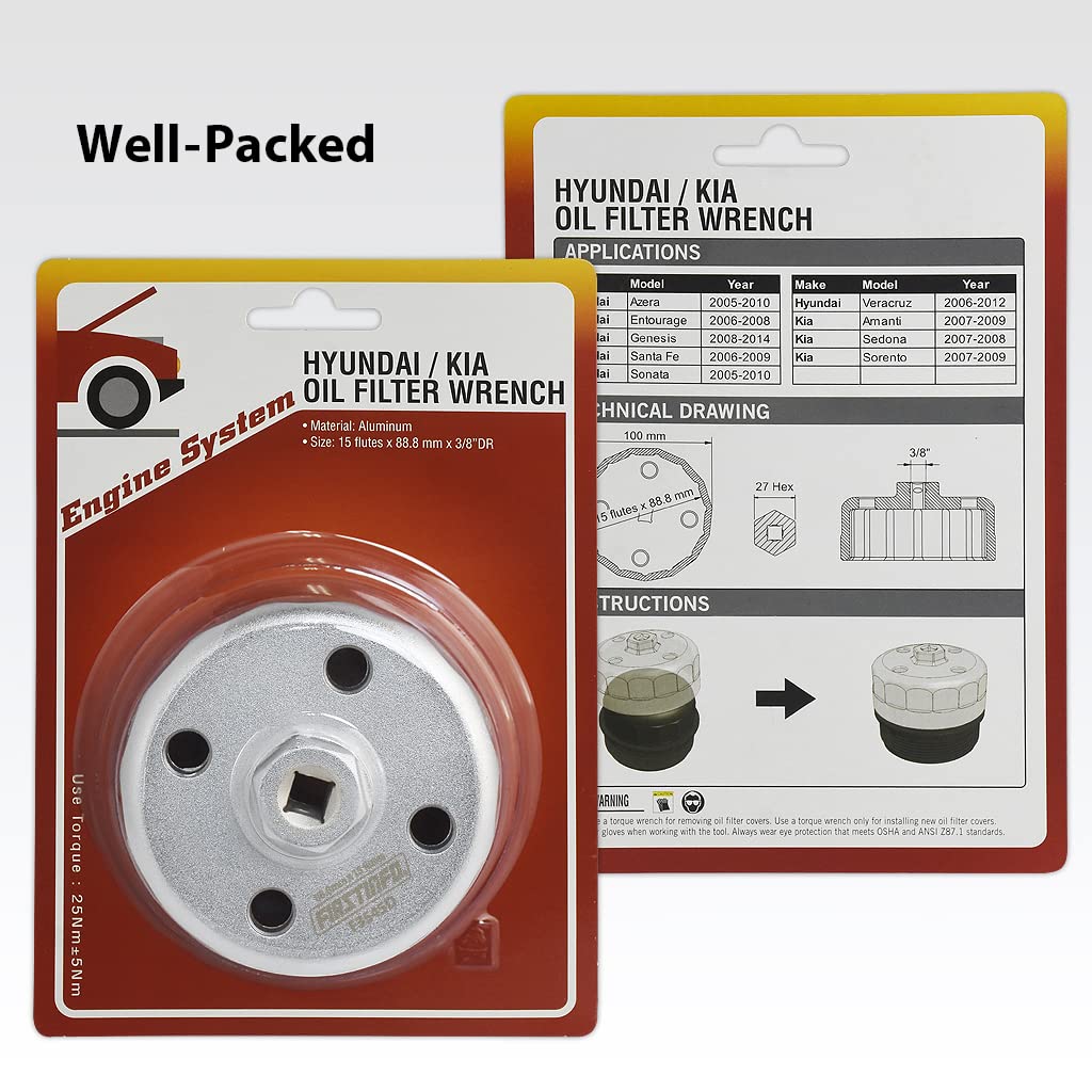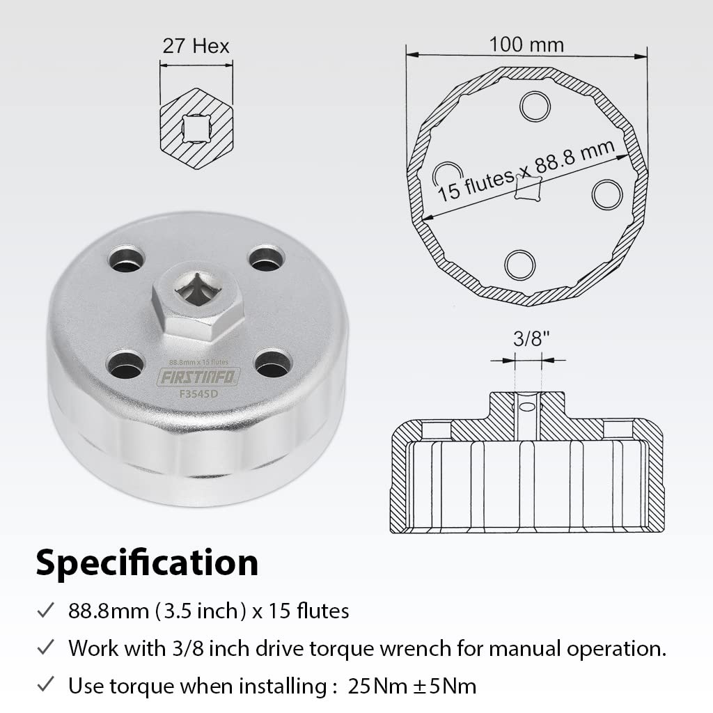 Firstinfo 3/8'' Drive 88.8 Mm 15 Flutes Oil Filter Wrench, Compatible With Hyundai And Kia