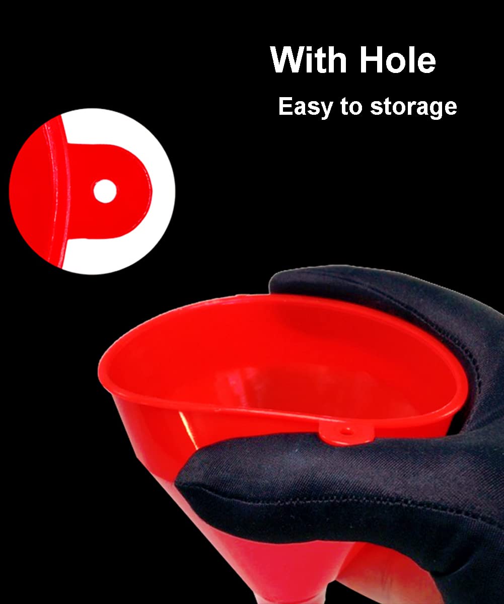 Q: What is the best way to use the funnel for pouring liquids?A: To use the funnel effectively, insert the wide neck properly into the gas tank or the desired opening, then pour the liquid slowly. The wide spout allows for high-velocity pouring, ensuring a smooth and hassle-free experience.