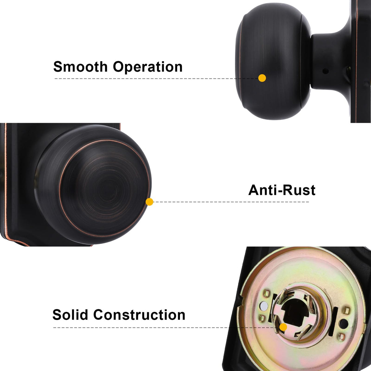 Q: What materials are the goldenwarm door knobs made from?A: The goldenwarm 6 Pack Bronze Passage Door Knobs are made from premium stainless steel, which ensures durability and longevity. They feature an electroplating paint finish for a stylish look.