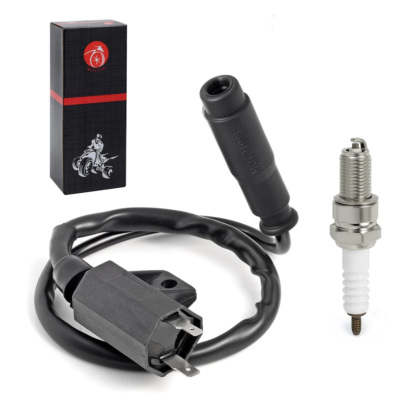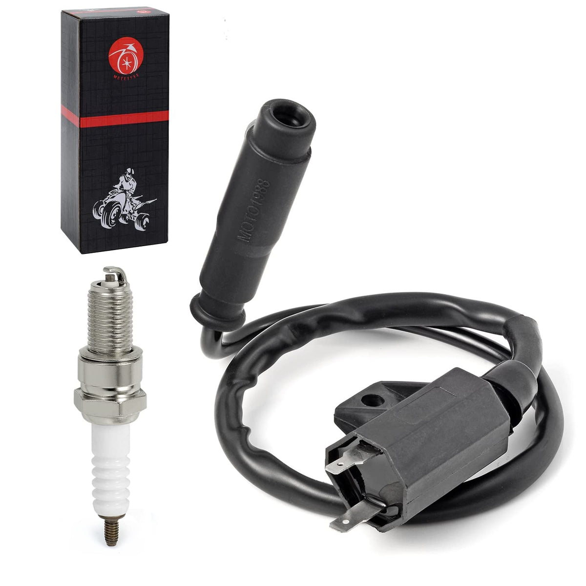 Q: What is included in the package for the Ignition Coil and Spark Plug set?A: The package includes one ignition coil, one spark plug cap, and one spark plug, ensuring you have all the necessary components for installation and replacement.