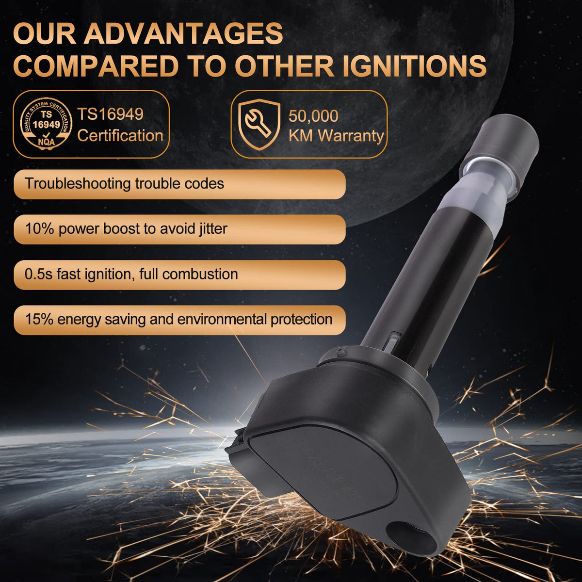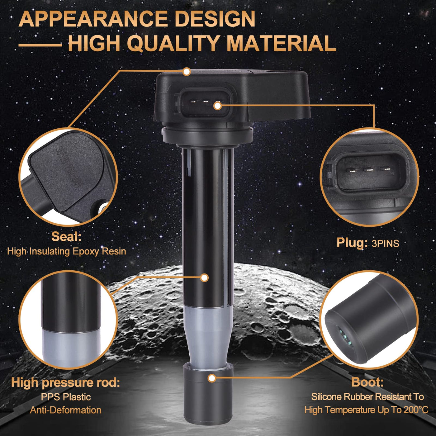 FITMENT:Compatible with these 3.5L V6 EngineCompatible with 1999-2007 Honda OdysseyCompatible with 2003-2008 Honda PilotCompatible with 2006-2008 Honda RidgelineCompatible with 2004-2007 Saturn VUECompatible with 2001-2006 Acura MDXCompatible with 2007-2008 Acura TLCompatible with 2005-2008 Acura RLCompatible with these 3.0L 3.2L 3.7L EngineCompatible with 2000-2007 Honda Accord V6 3.0LCompatible with 1999-2008 Acura TL V6 3.2LCompatible with 2001-2003 Acura CL V6 3.2LCompatible with 2007-2009 Acura MDX V6 3.7LCompatible with 2009-2011 Acura RL V6 3.7LCompatible with these L4 1.7L EngineCompatible with 2002 Acura ELCompatible with 2003 Acura ELCompatible with 2004 Acura ELCompatible with 2005 Acura ELWhat's the Symptoms of Bad Ignition Coils?1. Vehicle Hard to Start2. Check Engine Light On3. Misfire Engine4. Poor Gas Mileage Control5. Diminishing Power Output6. Oil LeakingWhat's the Symptoms of Bad Ignition Coils?1. Vehicle Hard to Start2. Check Engine Light On3. Misfire Engine4. Poor Gas Mileage Control5. Diminishing Power Output6. Oil Leaking