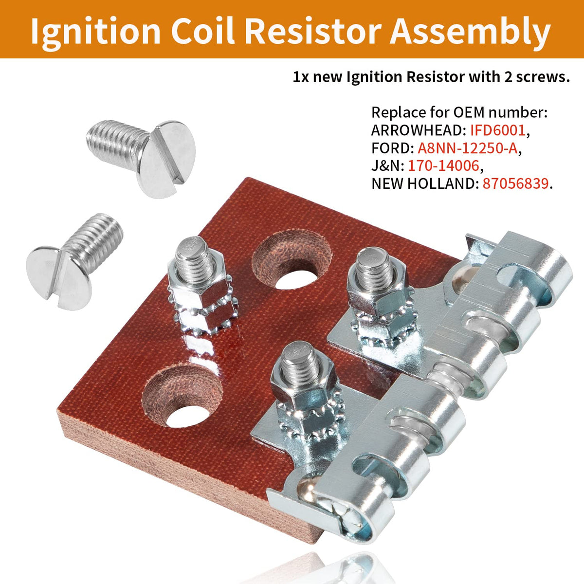 Ignition Coil Resistor Assembly Fit For Ford/New Holland Tractor 2N 8N 9N Replace For A8Nn-12250-A, 170-14006, 87056839, Ifd6001