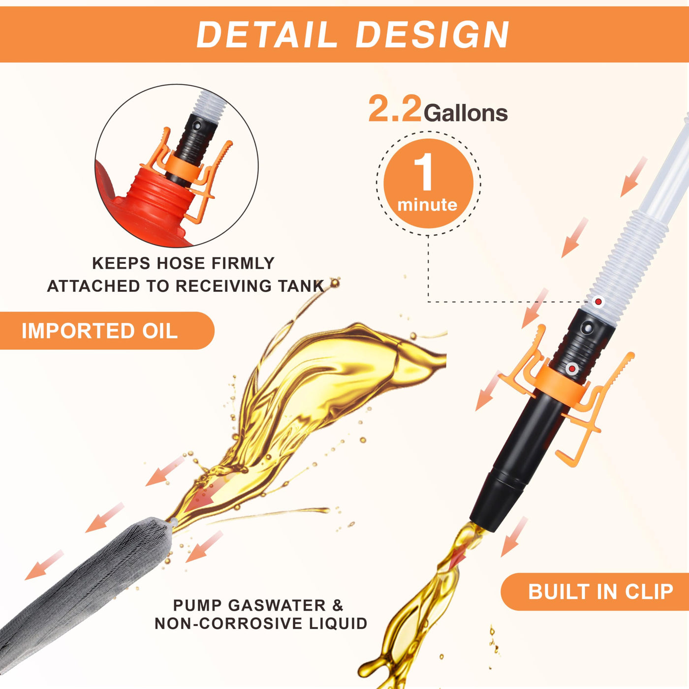 Portable Electric Siphon Pump for Gas and Diesel - Battery Operated Fuel Transfer Pump with 3.5GPM Flow Oil Extractor - Ideal Gasoline Transfer Pump Easy-to-Use Hand Fuel Pump