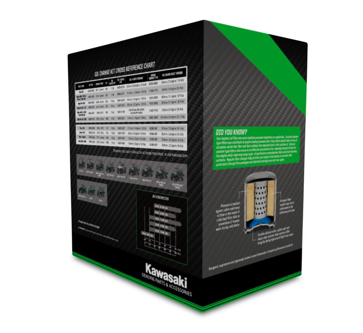 Q: What does the Kawasaki Oil Change Kit include?A: The Kawasaki Genuine Oil Change Kit includes 10W-40 ATV/UTV oil, a genuine Kawasaki oil filter, a drain bolt sealing washer, one pair of lime green disposable gloves, and one disposable funnel, providing everything you need for a comprehensive oil change.