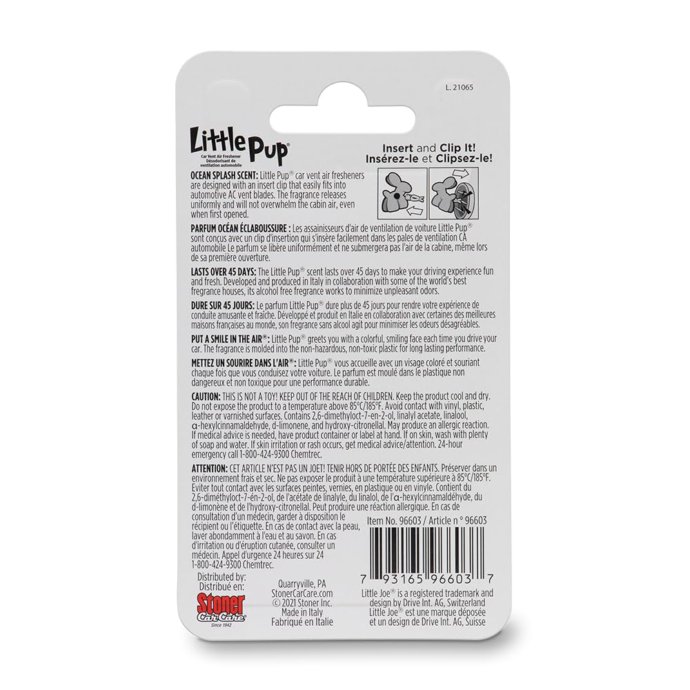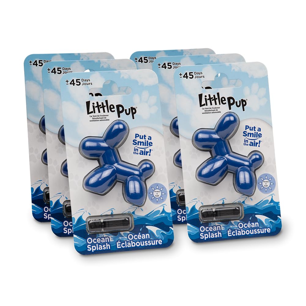 Little Pup 96603-6PK Ocean Splash Scent, Car Air Freshener, Clips to A/C Air Vent, Alcohol-Free Fragrance Oil, Non-Hazardous and