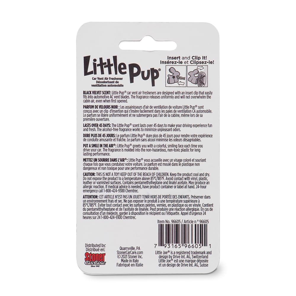 Little Pup 96605-6PK Black Velvet Scent, Car Air Freshener, Clips to A/C Air Vent, Alcohol-Free Fragrance Oil, Non-Hazardous and
