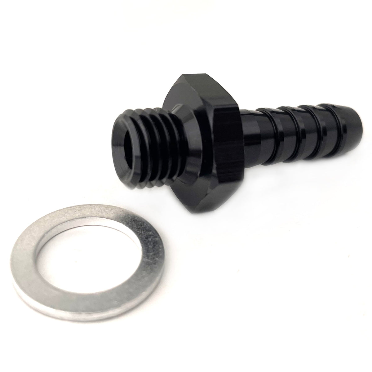 M12x1.5 Male to 3/8 (9.5mm) Hose Barb Fitting Fuel Oil Pump Inlet Adapter with AL Washer Aluminum Black Anodized